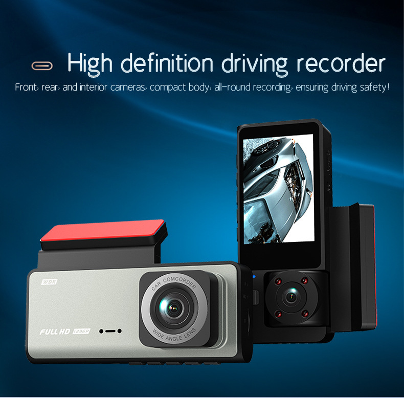 新款跨境车载行车记录仪三镜头双三录1080P夜视高清手机互联WIFI