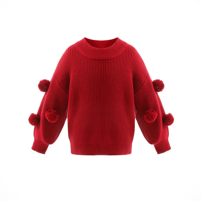 • 고품질 원단과 보풀 방지 기능이 있는 버건디 퍼 볼 스웨터