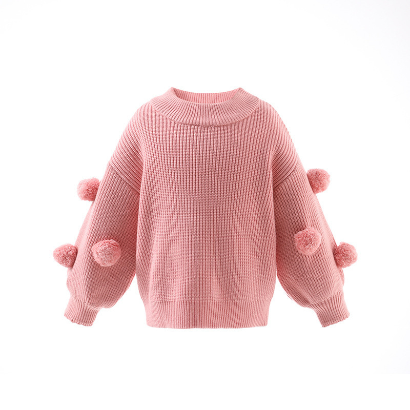• 핑크 퍼 볼 스웨터, 고품질 원단, 보풀 방지
