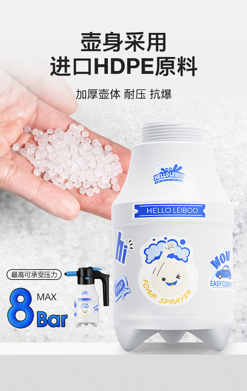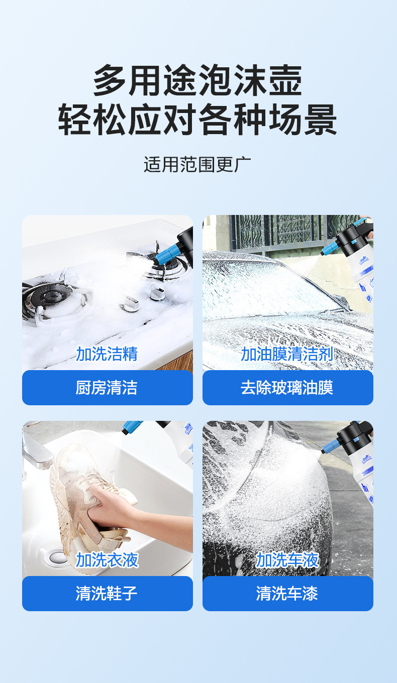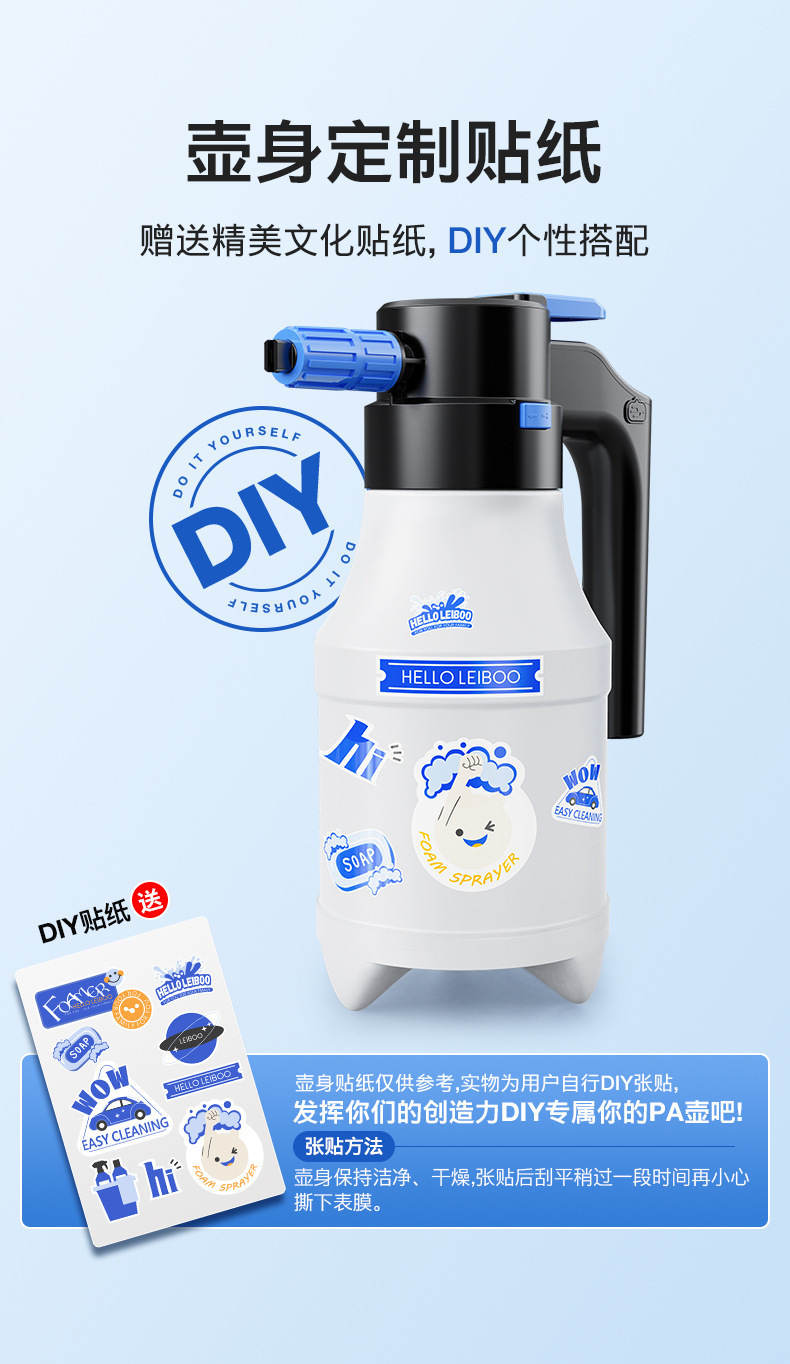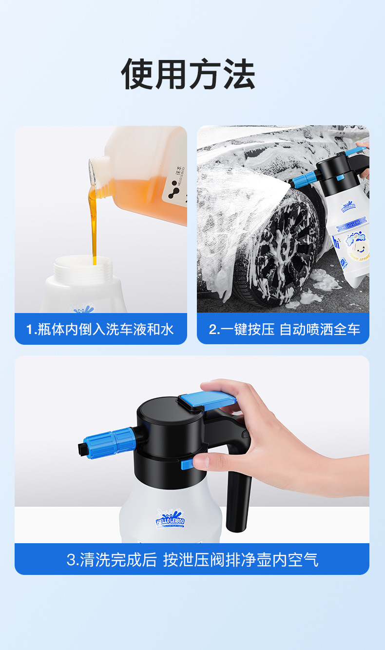2.喷壶适用于家庭清洁和汽车清洁喷洒无腐蚀性型液体。请勿用于喷洒酸液,酒精,汽油等强腐蚀性液体。