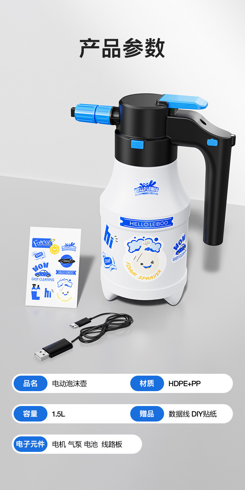 【产品清单】:喷壶*1 数据线*1 使用说明书*1