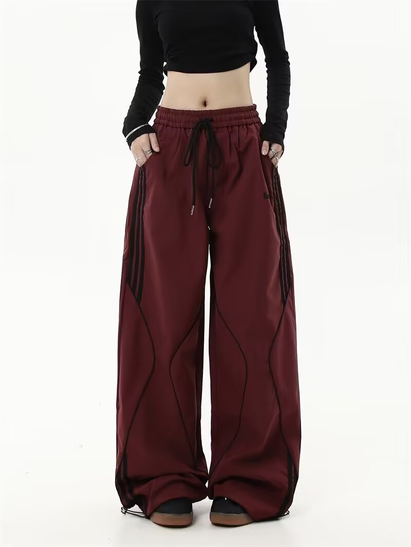 미국 솔리드 컬러 크레인 바지 소녀 아메리칸 레트로 스트라이프 스포츠 바지 패션 브랜드 재즈 댄스 힙합 스트레이트 바지