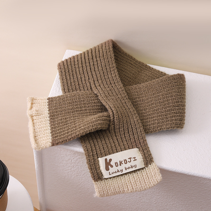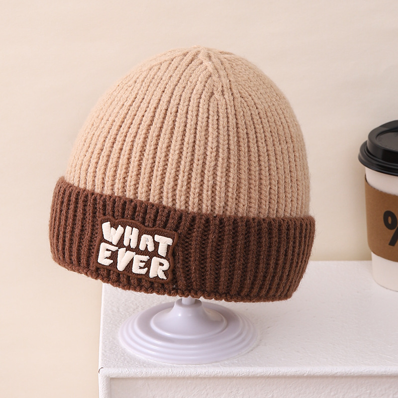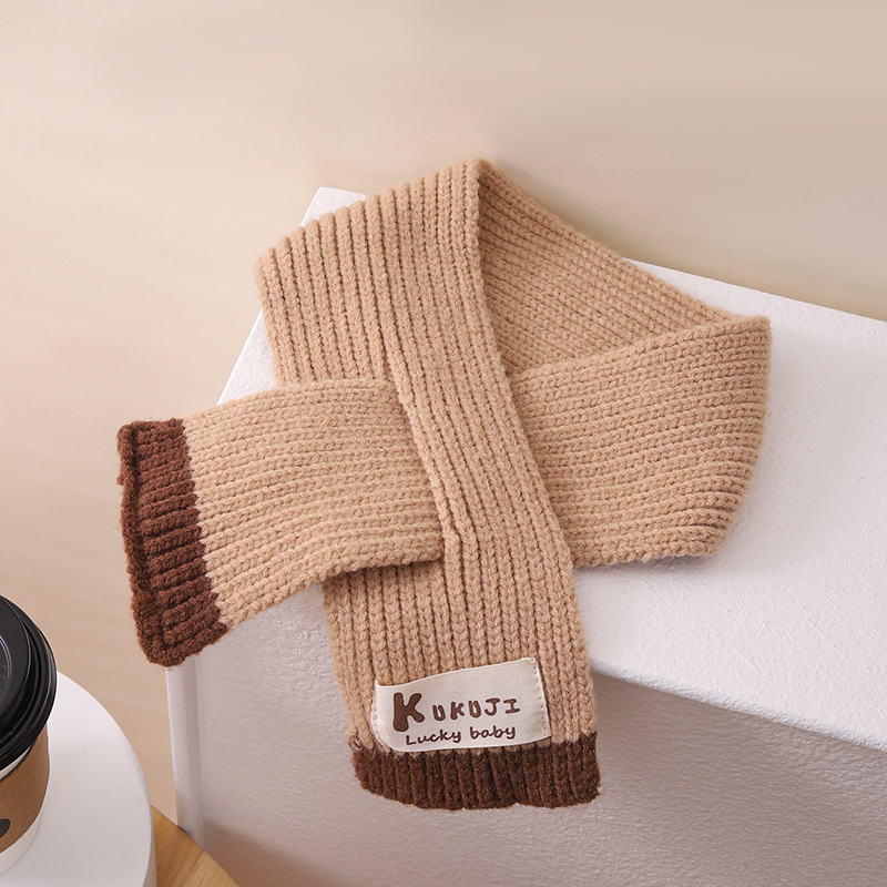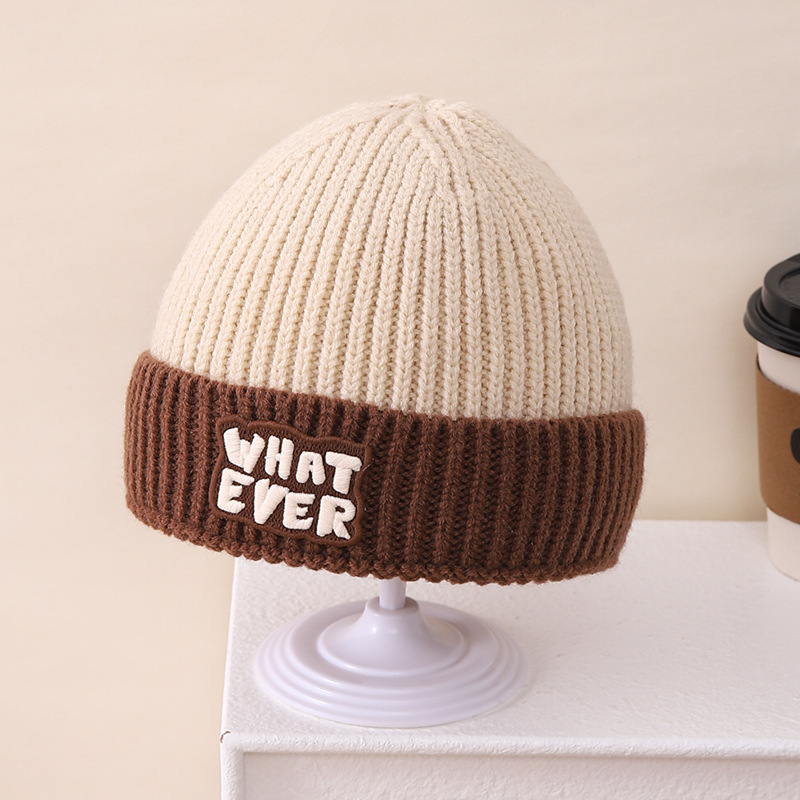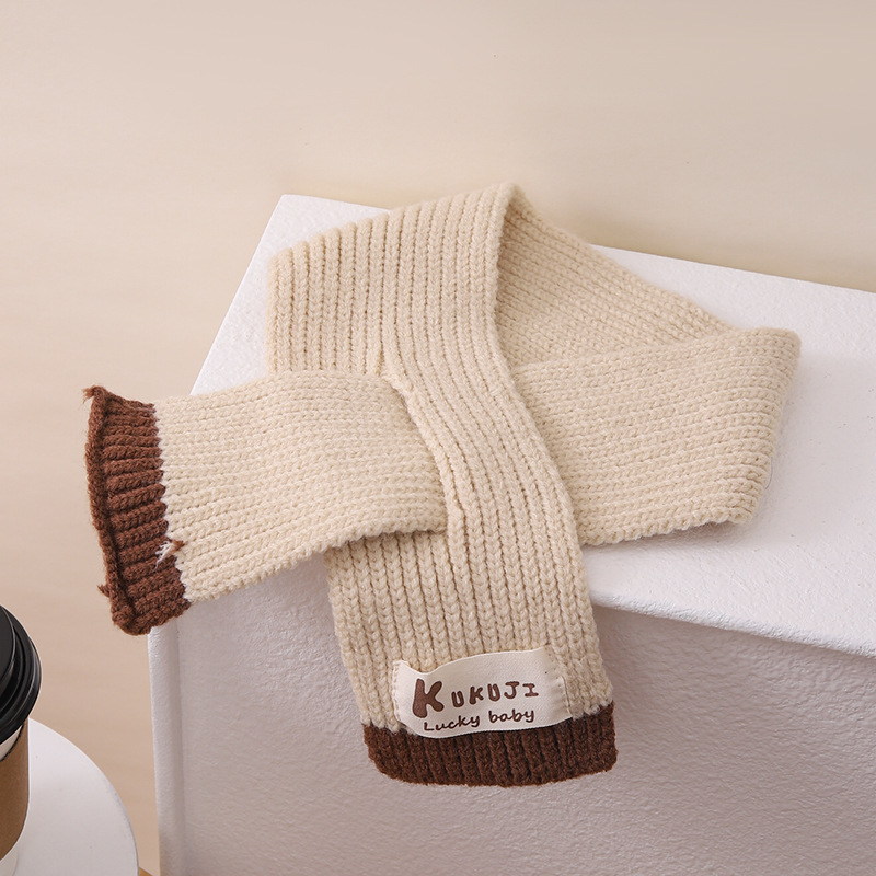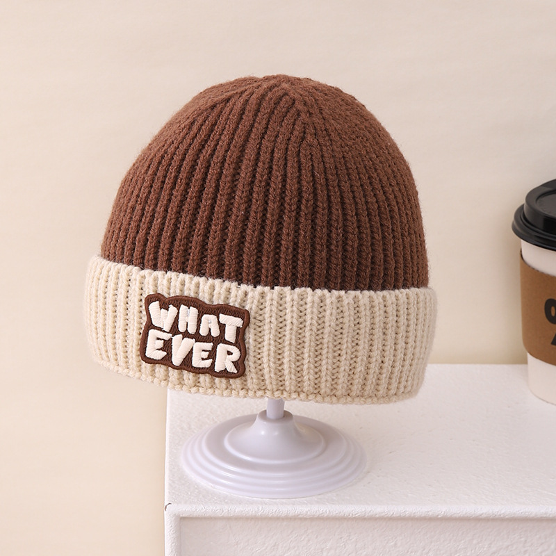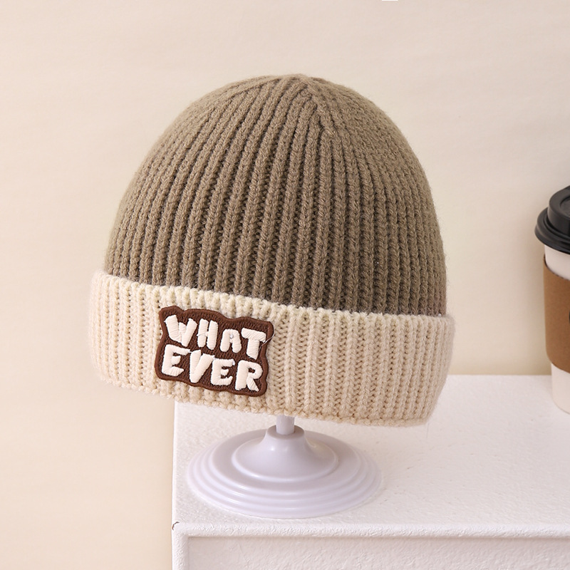 영어 편지 가죽 라벨 한국식 아기 니트 모자 풀오버 캡 올 매치 패션 귀여운 같은 색 스카프 모자 세트스토어 가기
