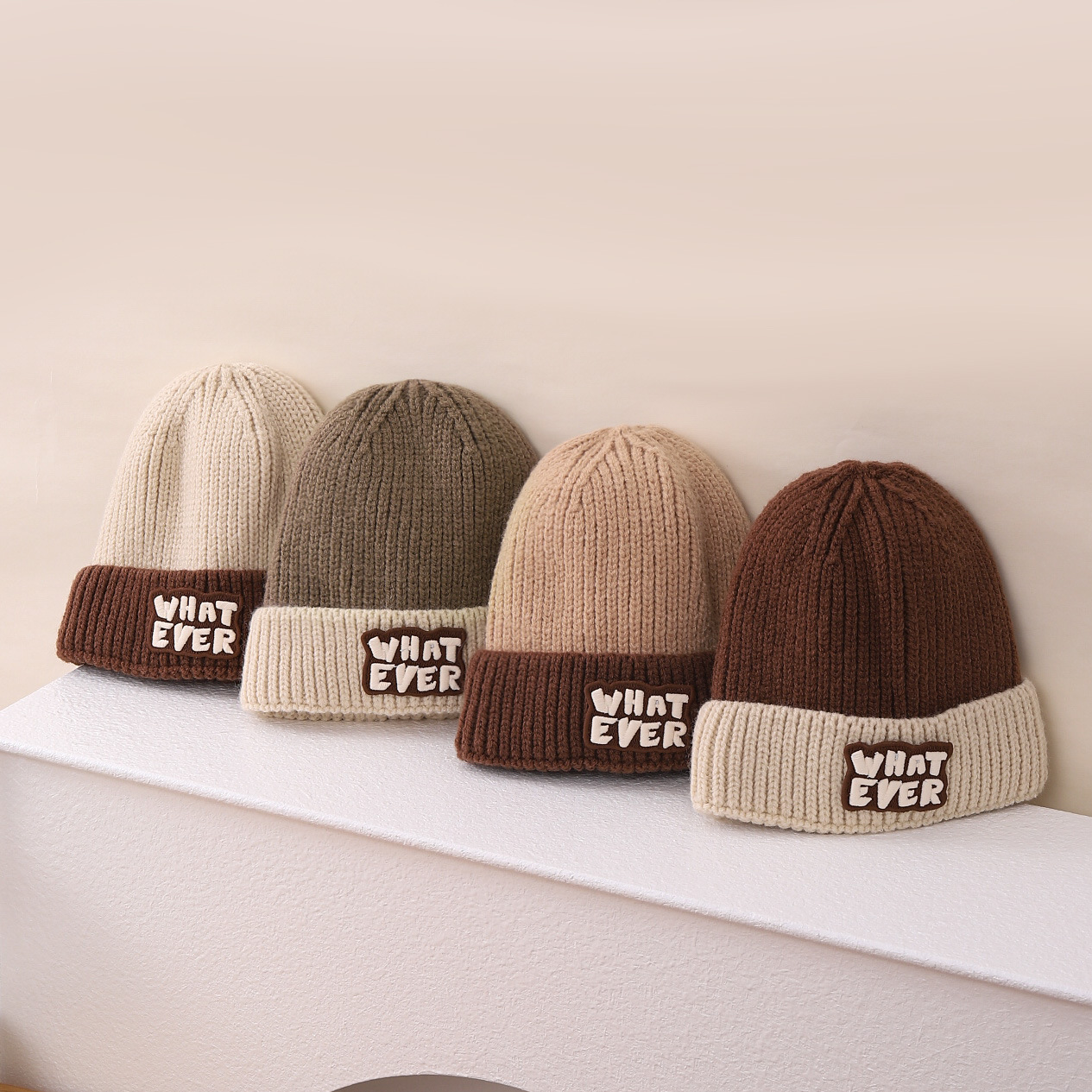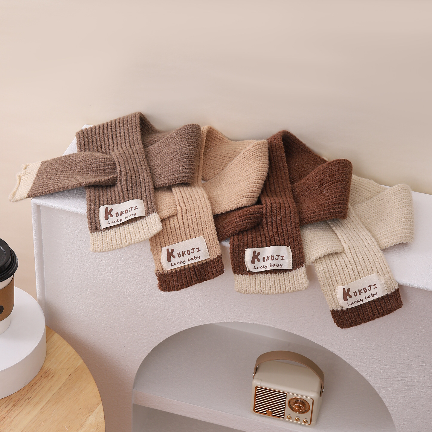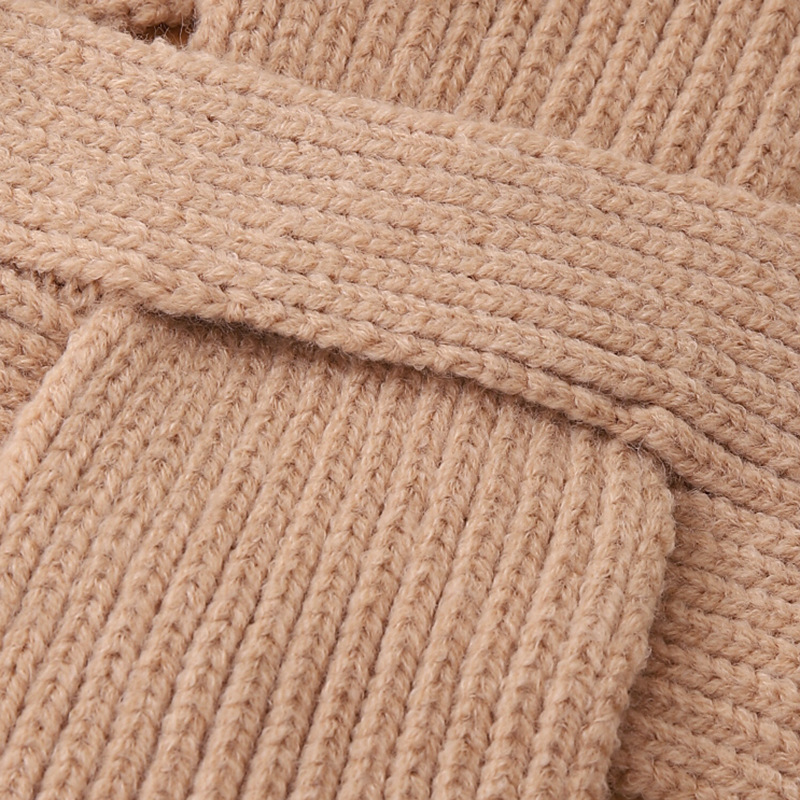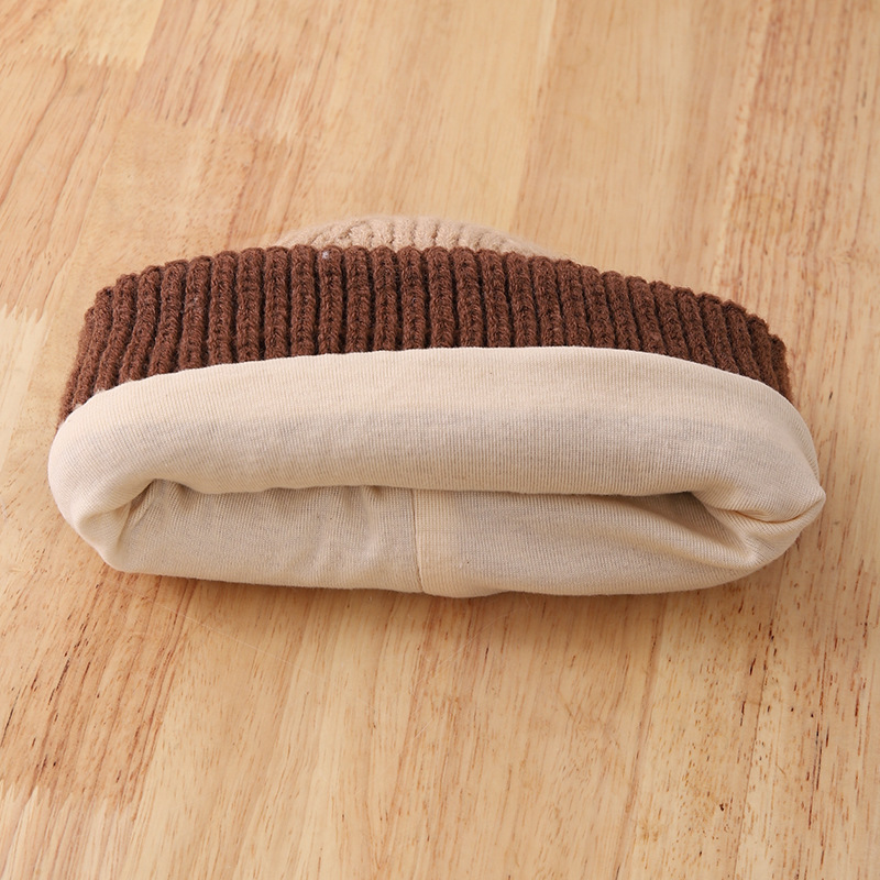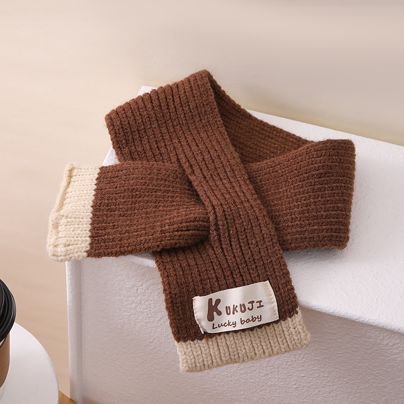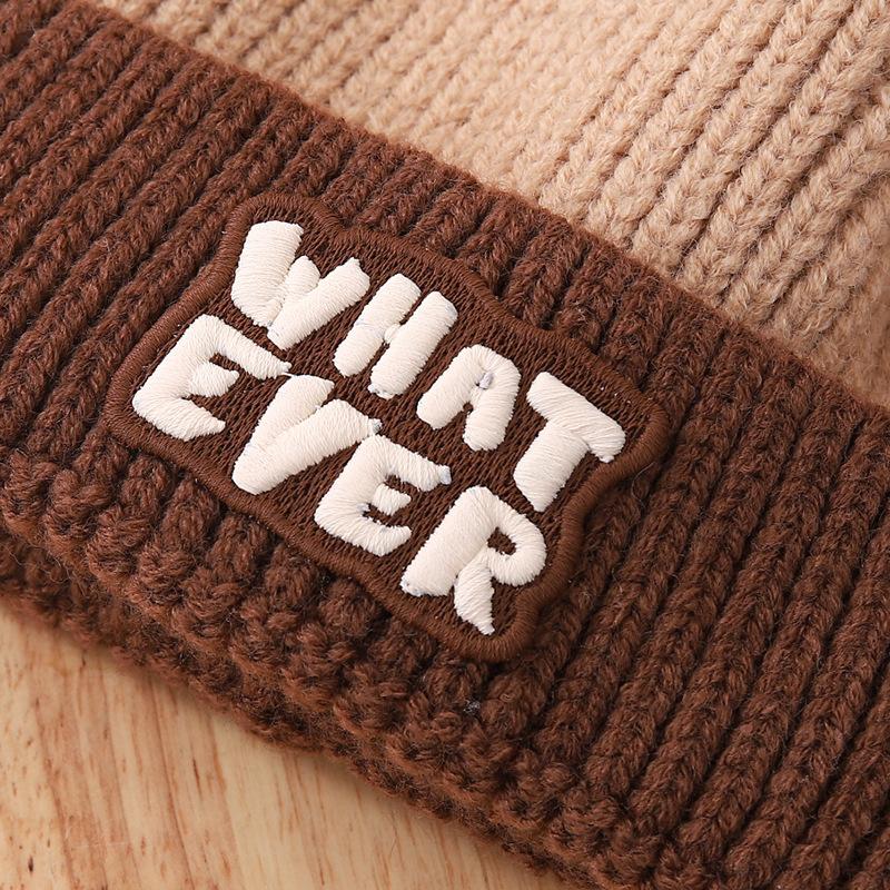 영어 편지 가죽 라벨 한국식 아기 니트 모자 풀오버 캡 올 매치 패션 귀여운 같은 색 스카프 모자 세트스토어 가기