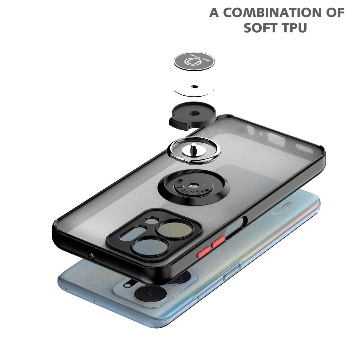 Qiying 세대를위한 X7A 휴대 전화 케이스 명예 화웨이 NovaY90 모든 것을 포함하는 피부 감지 자기 반지 보호 케이스
