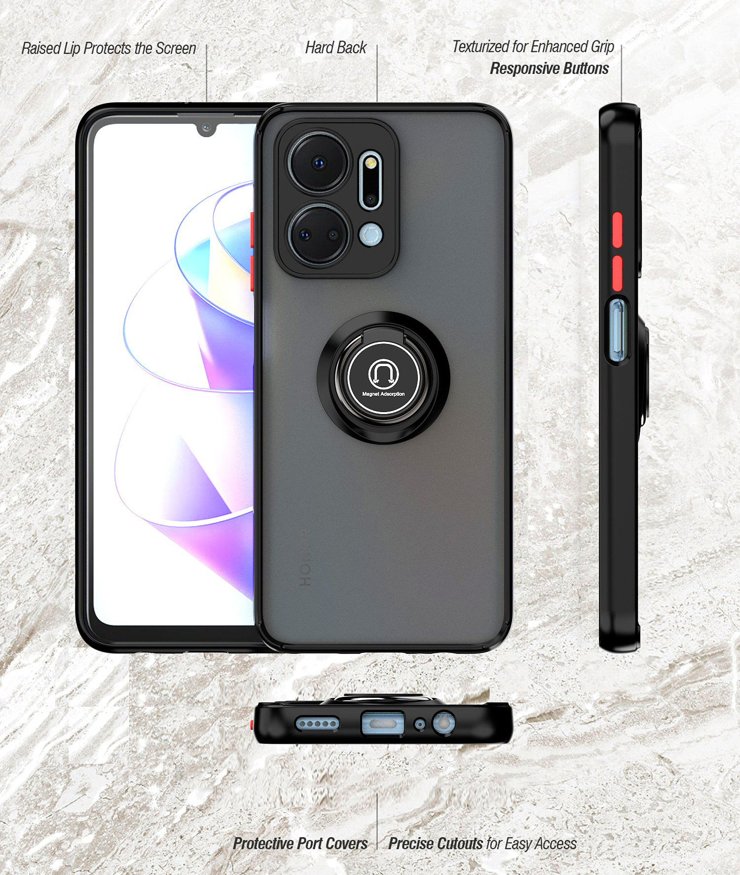 Qiying 세대를위한 X7A 휴대 전화 케이스 명예 화웨이 NovaY90 모든 것을 포함하는 피부 감지 자기 반지 보호 케이스스토어 가기