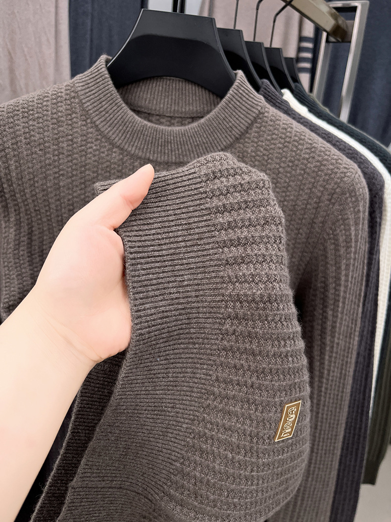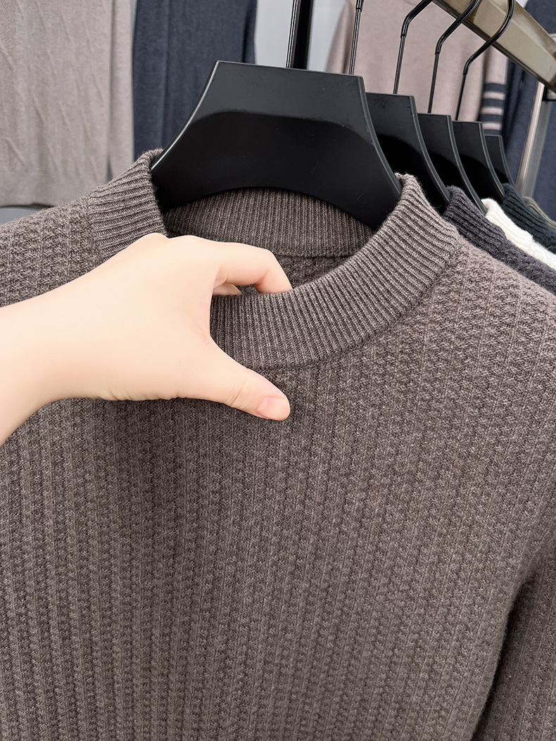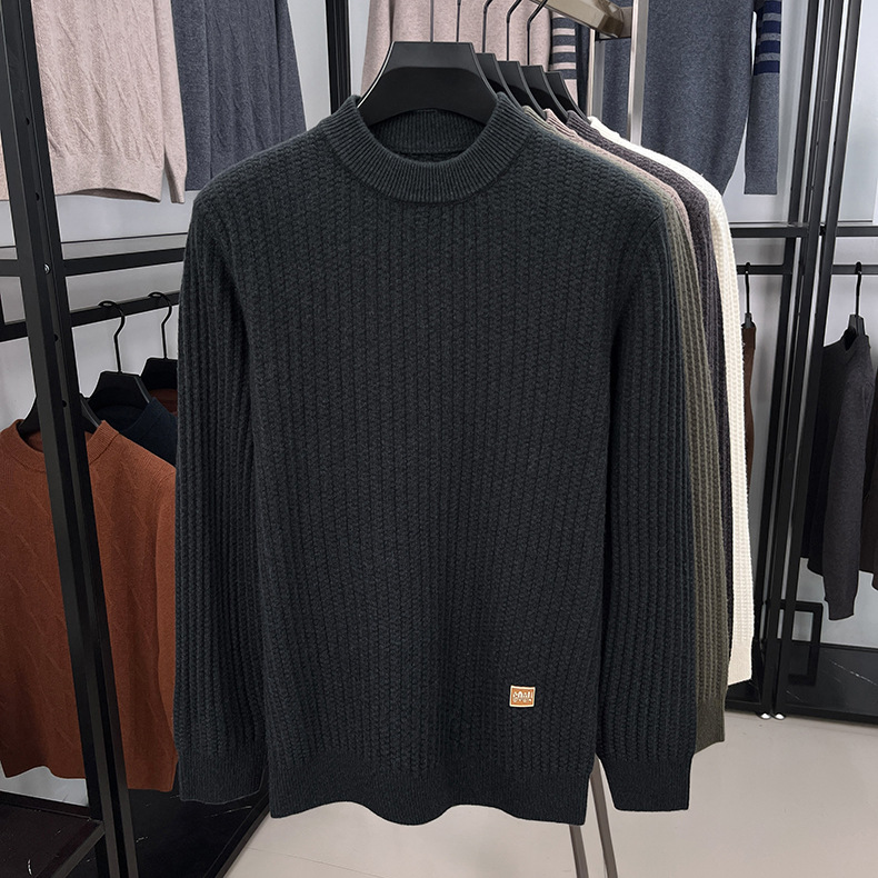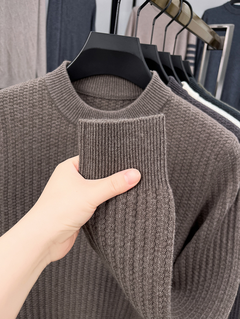 공장 상점 가을과 겨울 부드러운 왁스 100 순수 양모 스웨터 남자 크루 넥 스웨터 긴 소매 따뜻한 두꺼운 베이스 셔츠