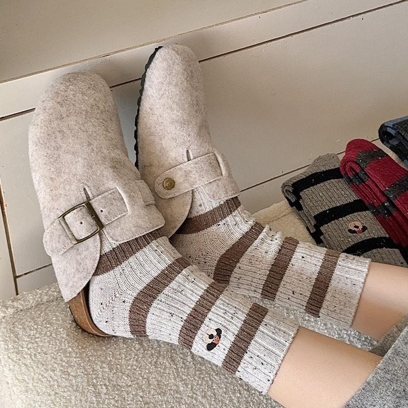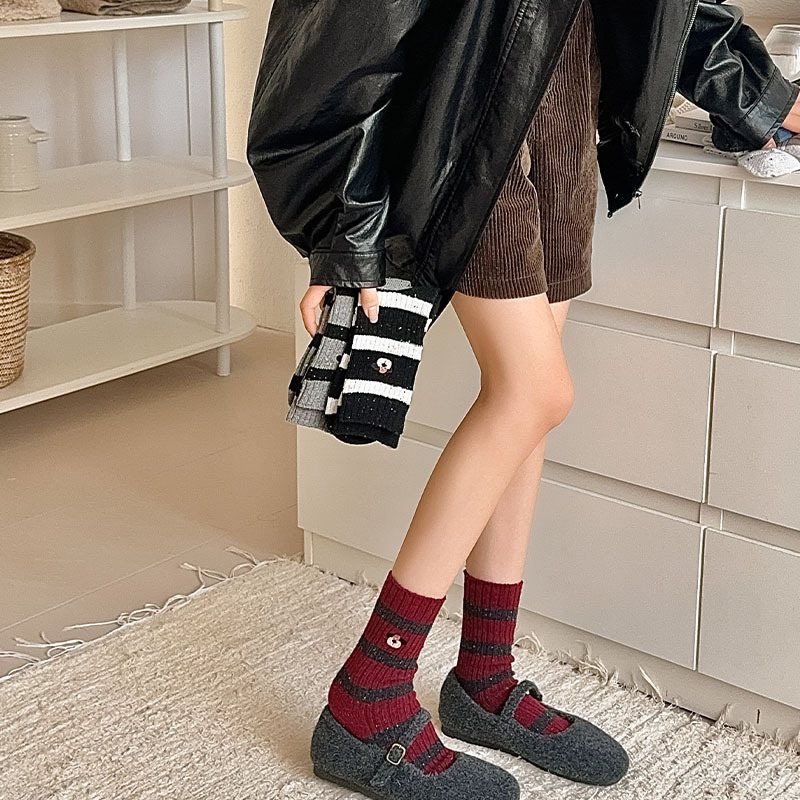 도트 원사 줄무늬 양말 어린이 Ins 가을과 겨울 두꺼운 따뜻한 일본 스타일 만화 강아지 자수 양모스토어 가기