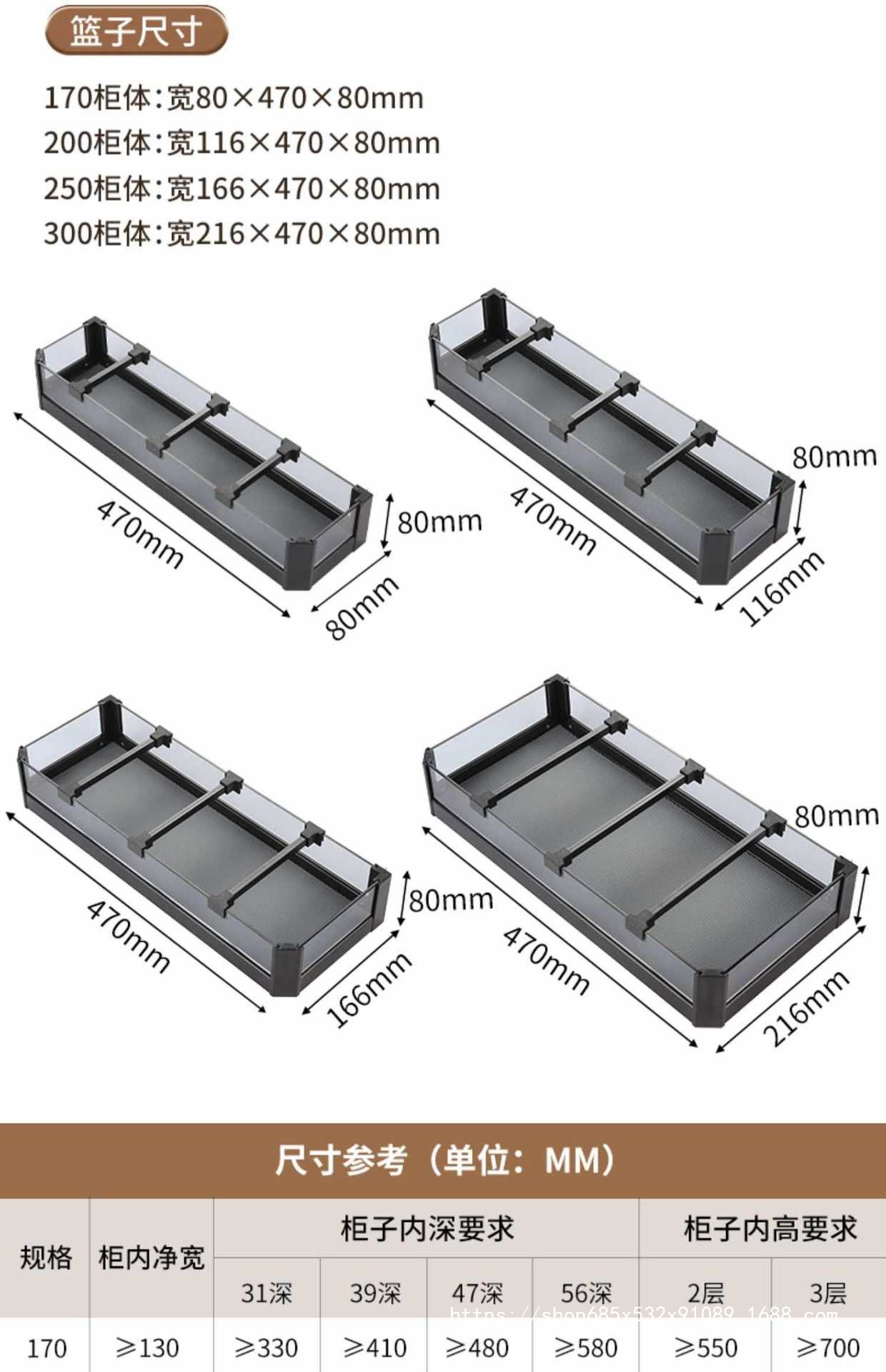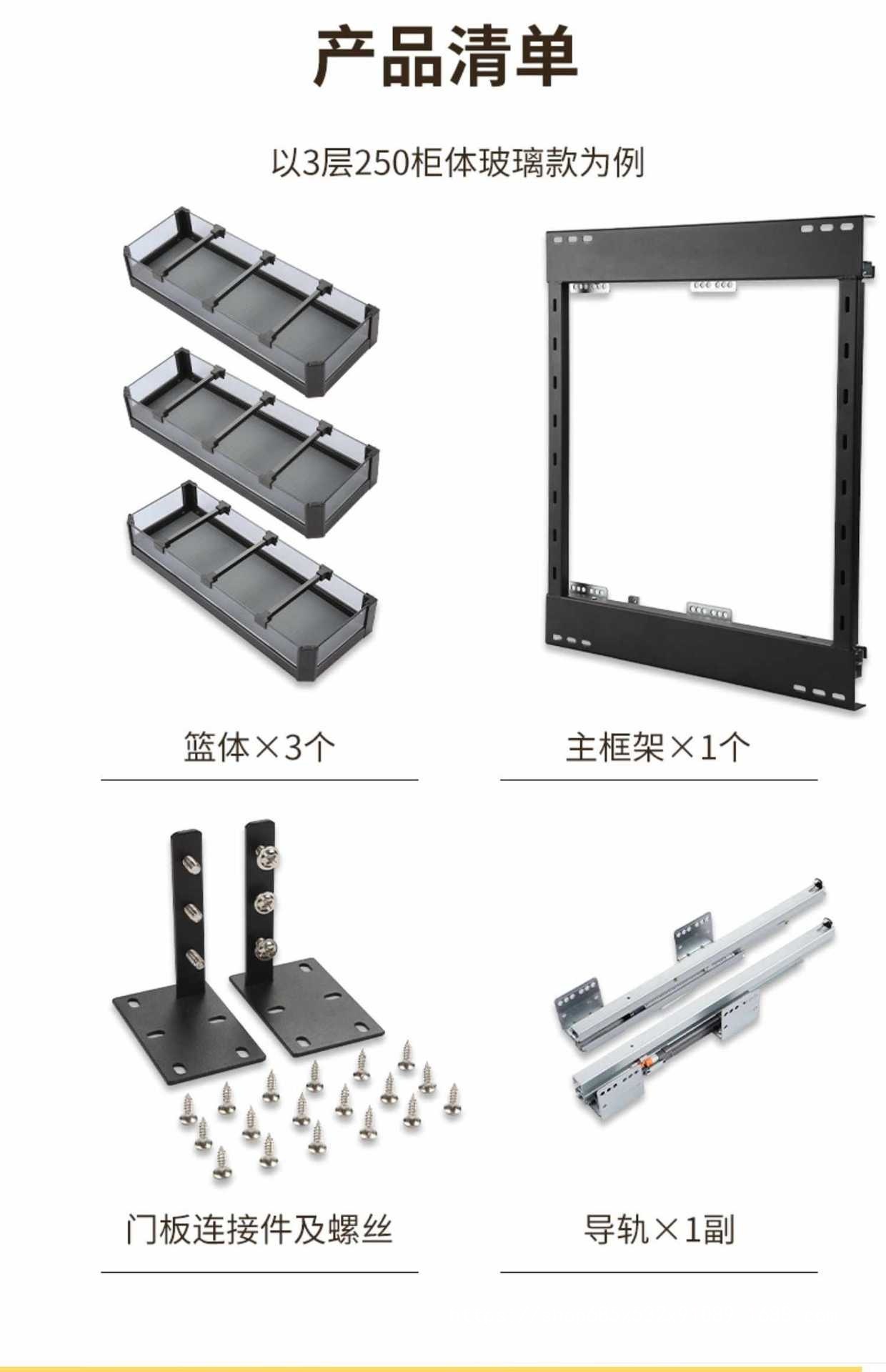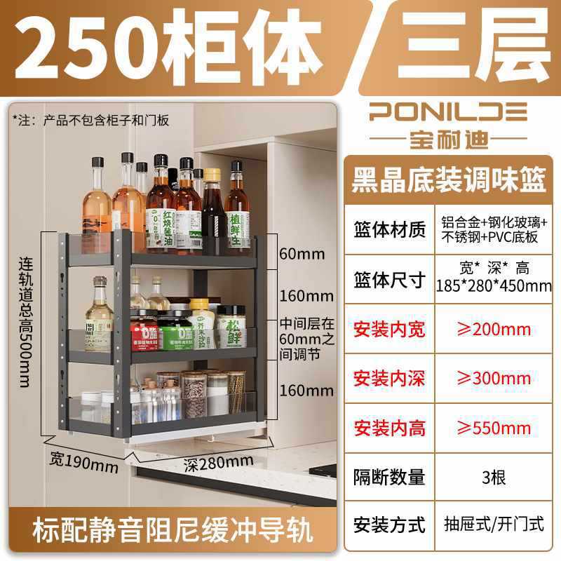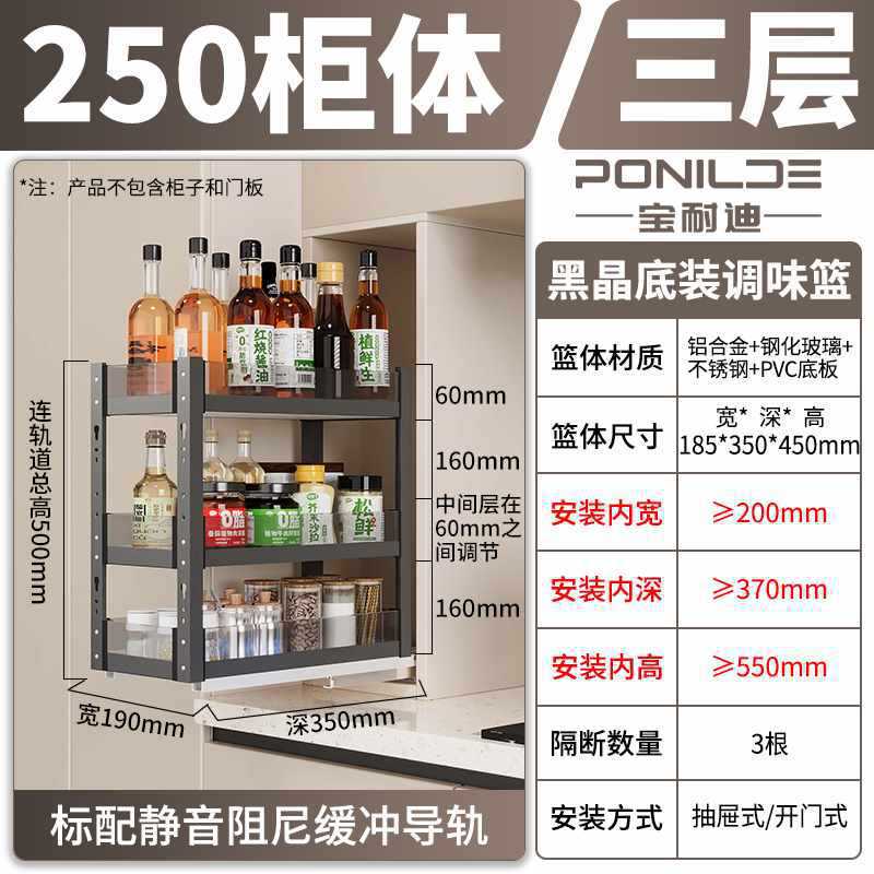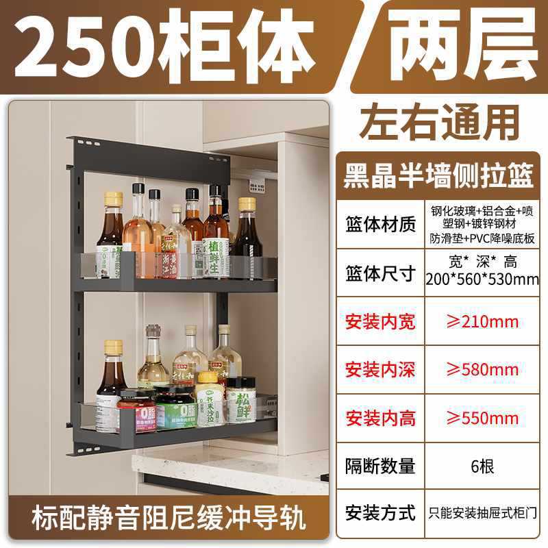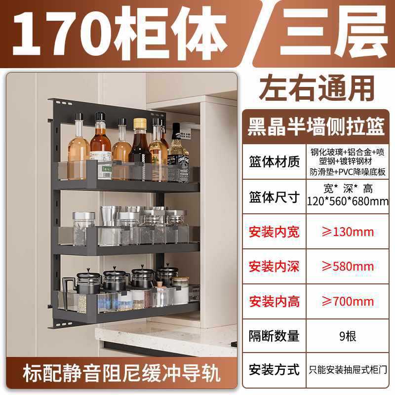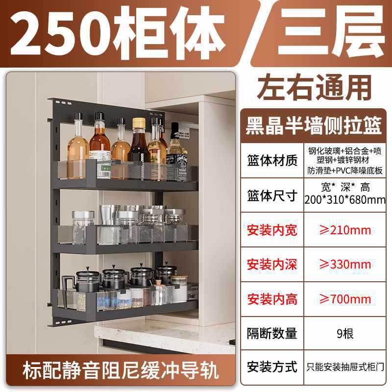• 56 깊이 - [3층] 200 캐비닛 블랙 크리스탈 반벽 측면 당김 바구니 심화 [측면 장착 트랙