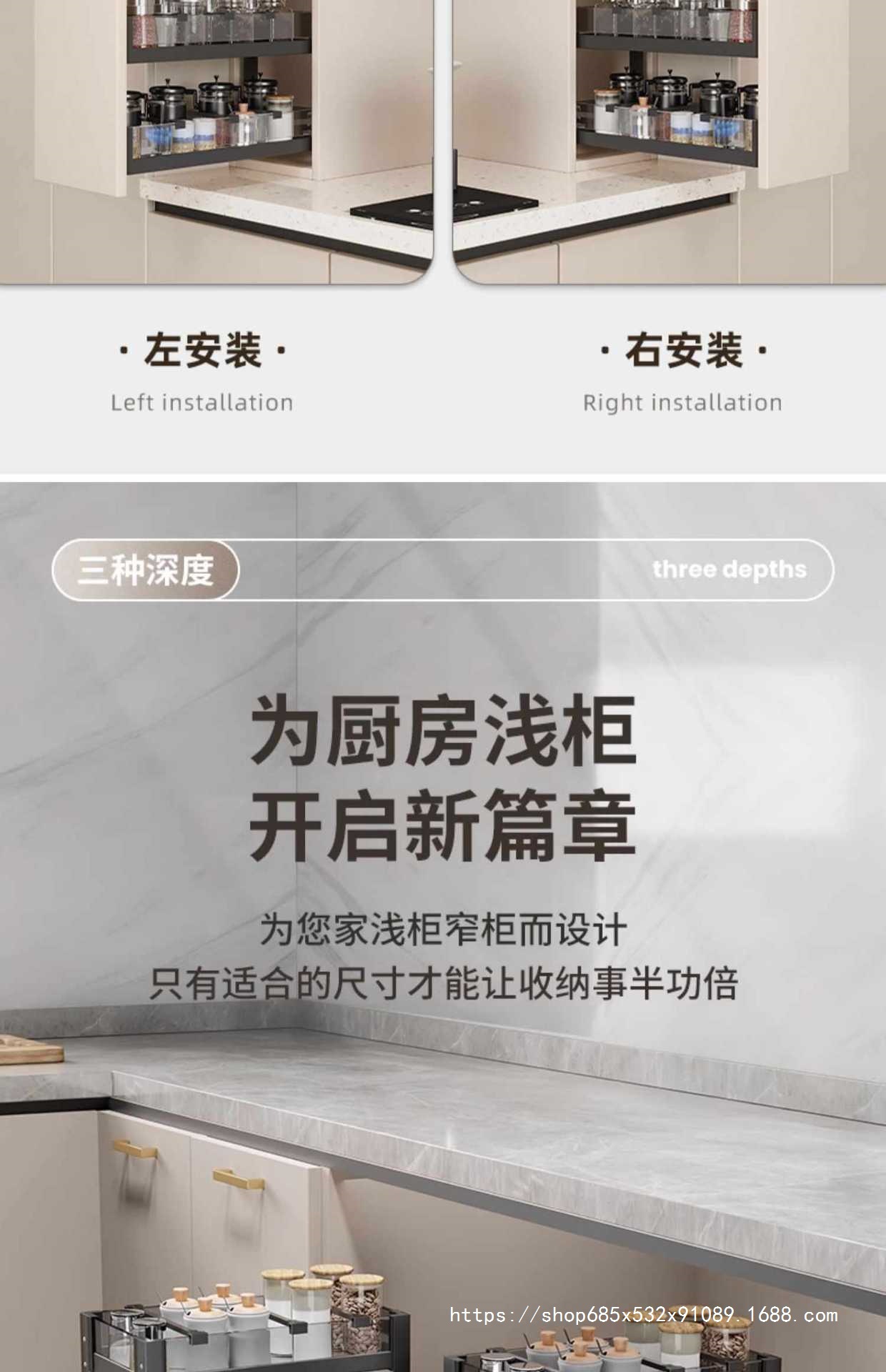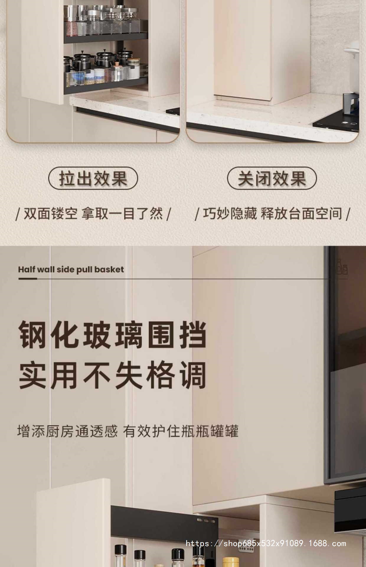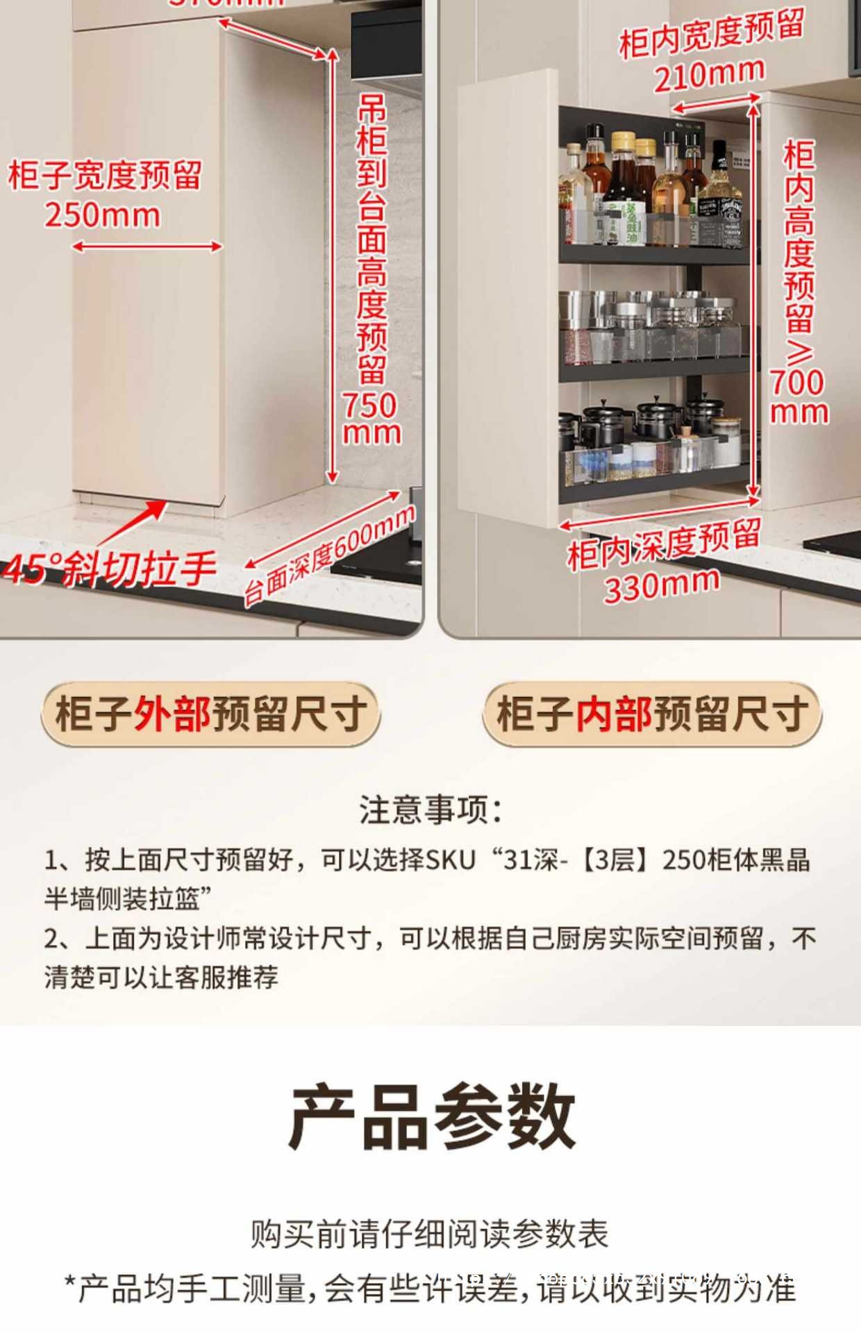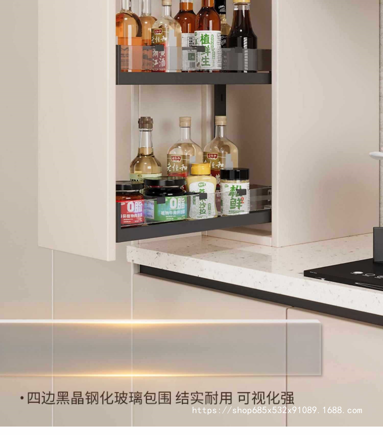 • 56 깊이 - [3층] 200 캐비닛 블랙 크리스탈 반벽 측면 당김 바구니 심화 [측면 장착 트랙