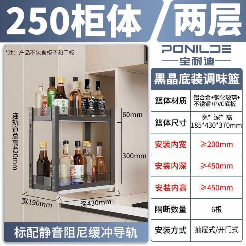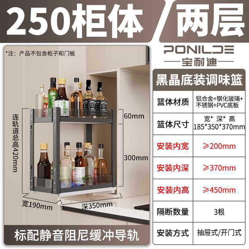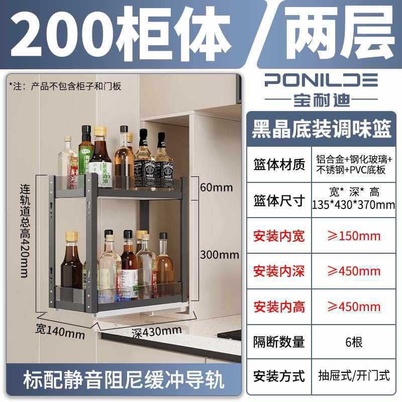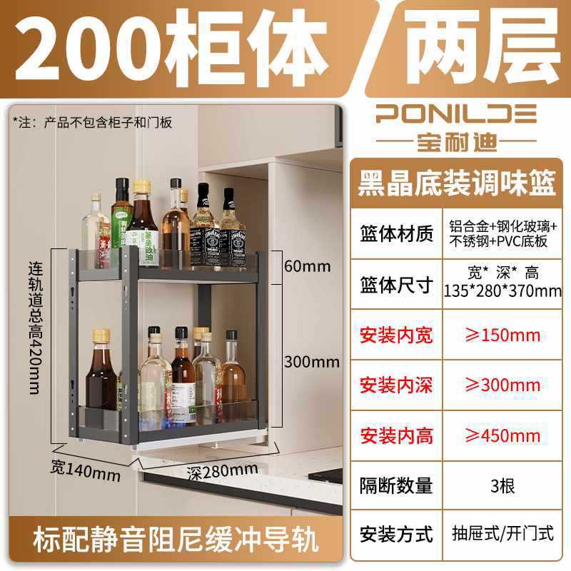 • 깊이 35 - [2단] 블랙 크리스탈 200 캐비닛 바닥 조미료 바구니 [하단 트랙 고정]