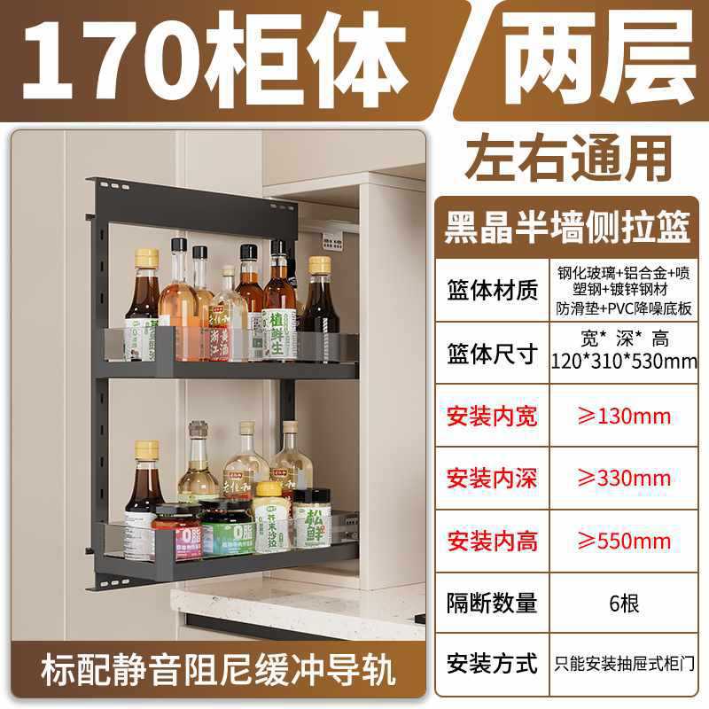 • 47 깊이 - [2레이어] 170 캐비닛 블랙 크리스탈 반벽 측면 당김 바구니 [측면 장착 트랙 고정]