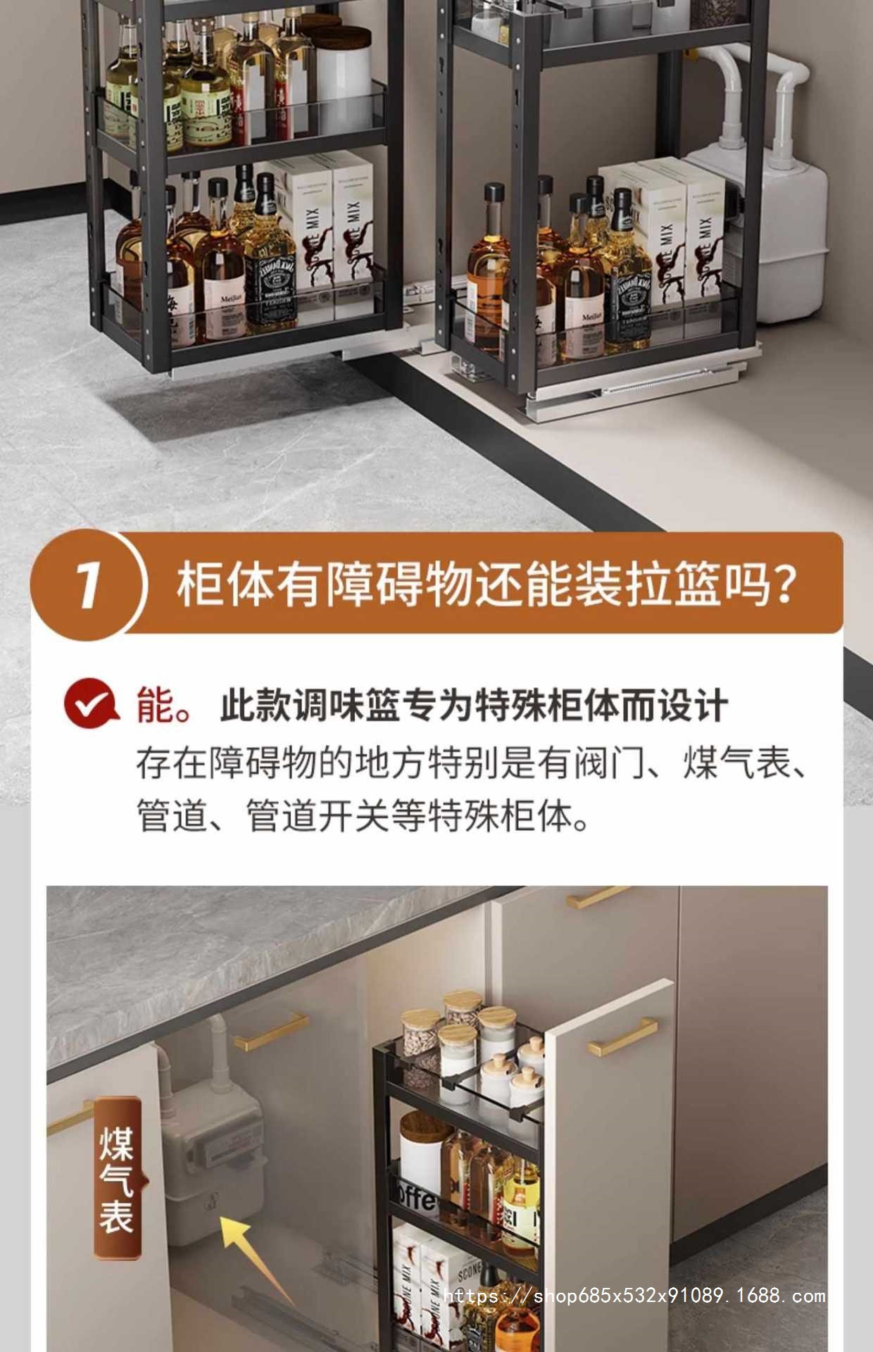 캐비닛 측면 당김 양념 랙 수축 카운터 표면 바구니 주방 낮은 바구니 양념 바구니 매우 좁은 풀 캐비닛 저장 랙스토어 가기