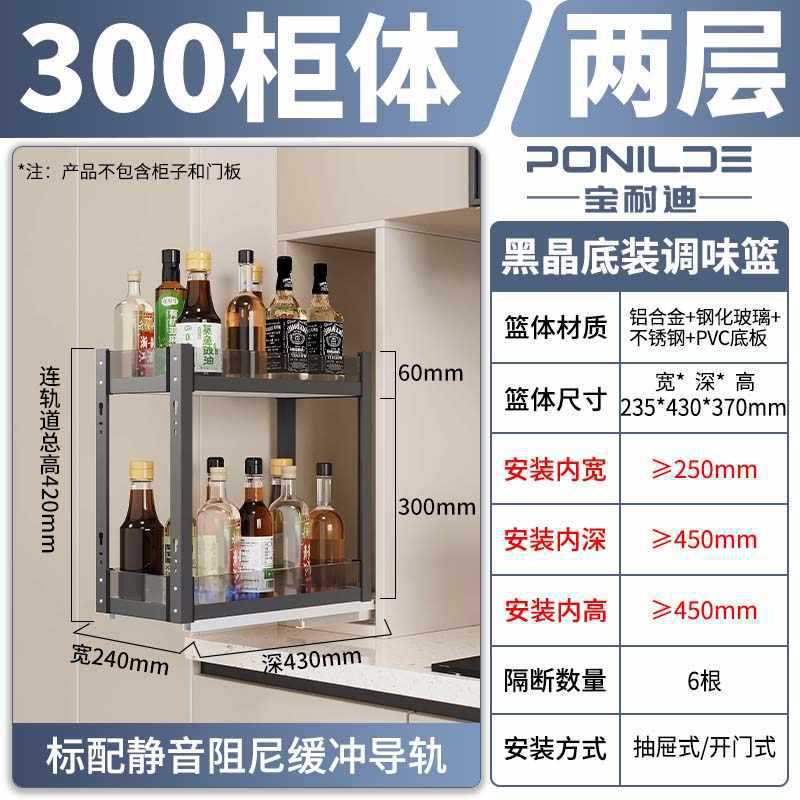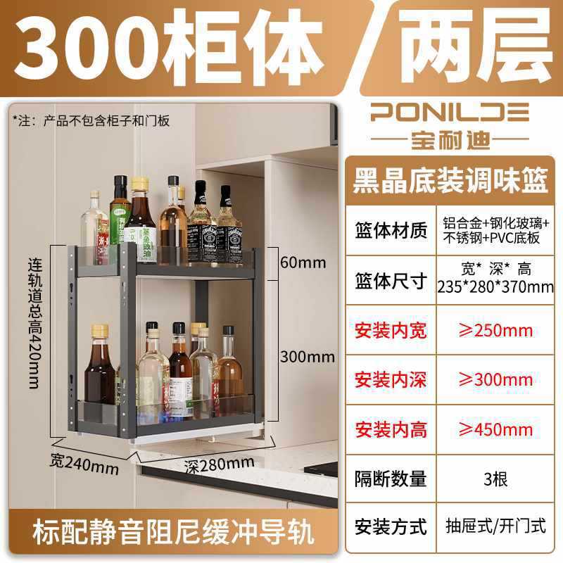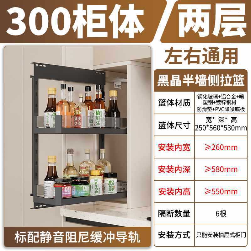 • 47 깊이 - [2레이어] 300 캐비닛 블랙 크리스탈 반벽 측면 당김 바구니 [측면 장착 트랙 고정]