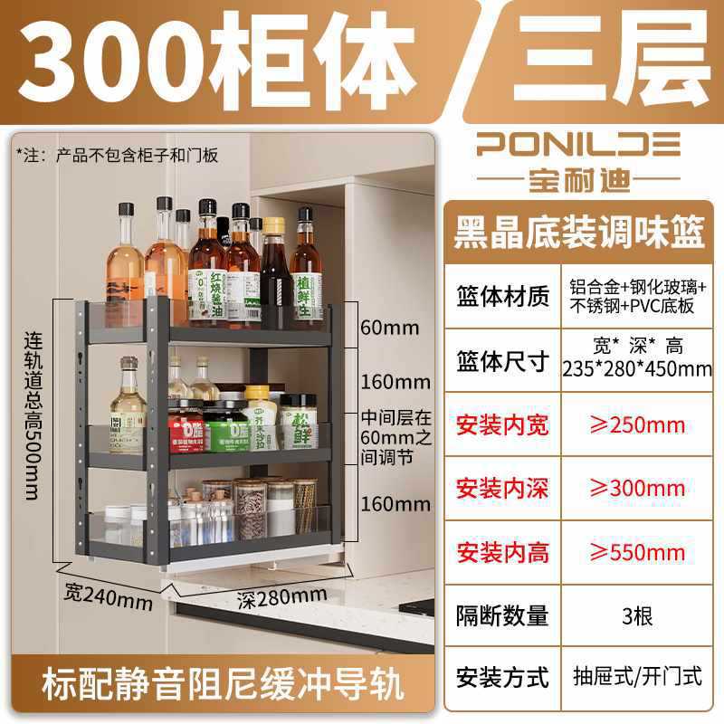 • 56 깊이 - [3층] 300 캐비닛 블랙 크리스탈 반벽 측면 당김 바구니 심화 [측면 장착 트랙