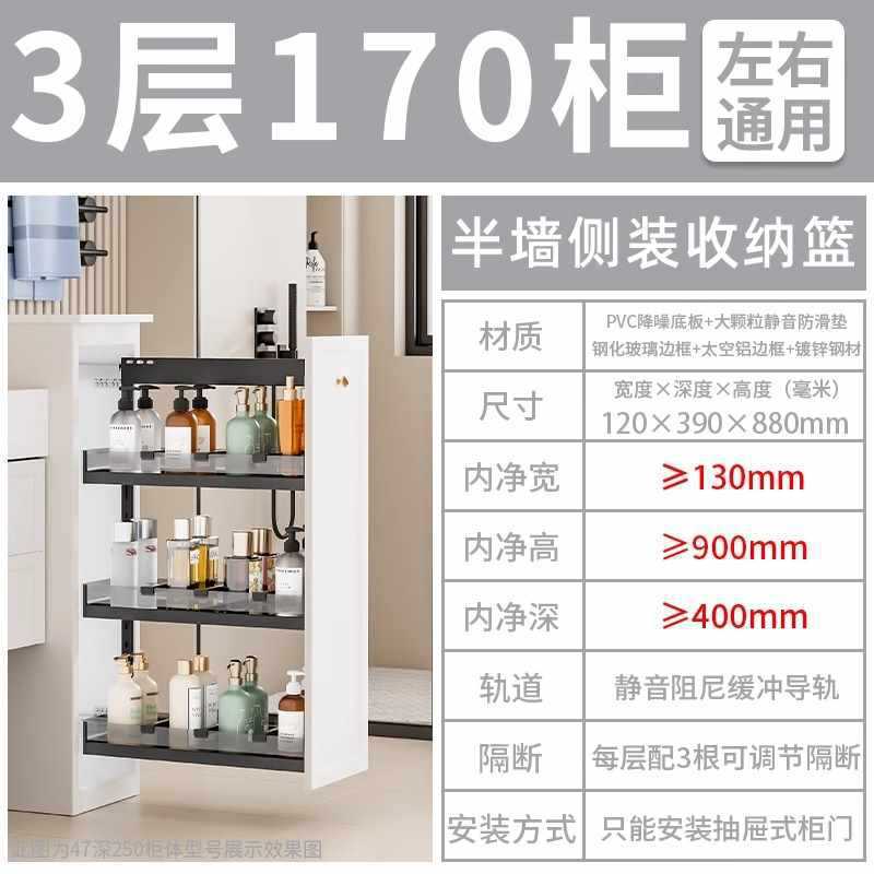 • 31 깊이 - [3단] 170 캐비닛 블랙 크리스탈 반벽 사이드 풀 바스켓 [점장 추천! 측면 장착