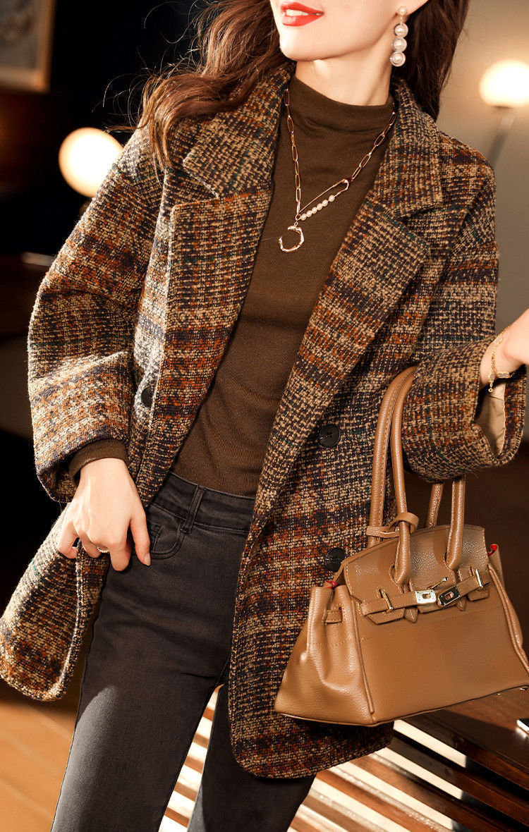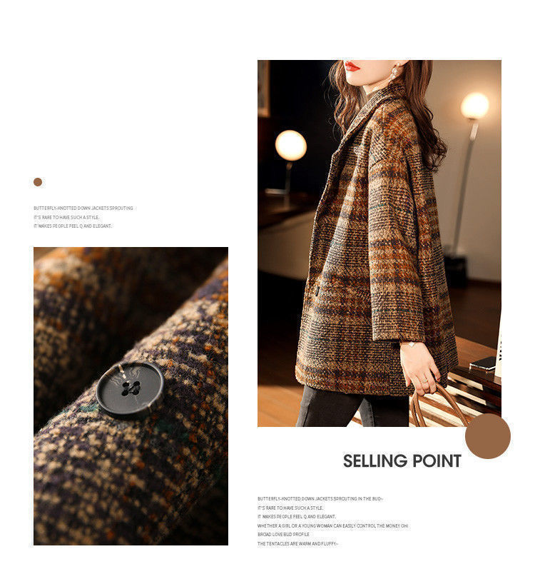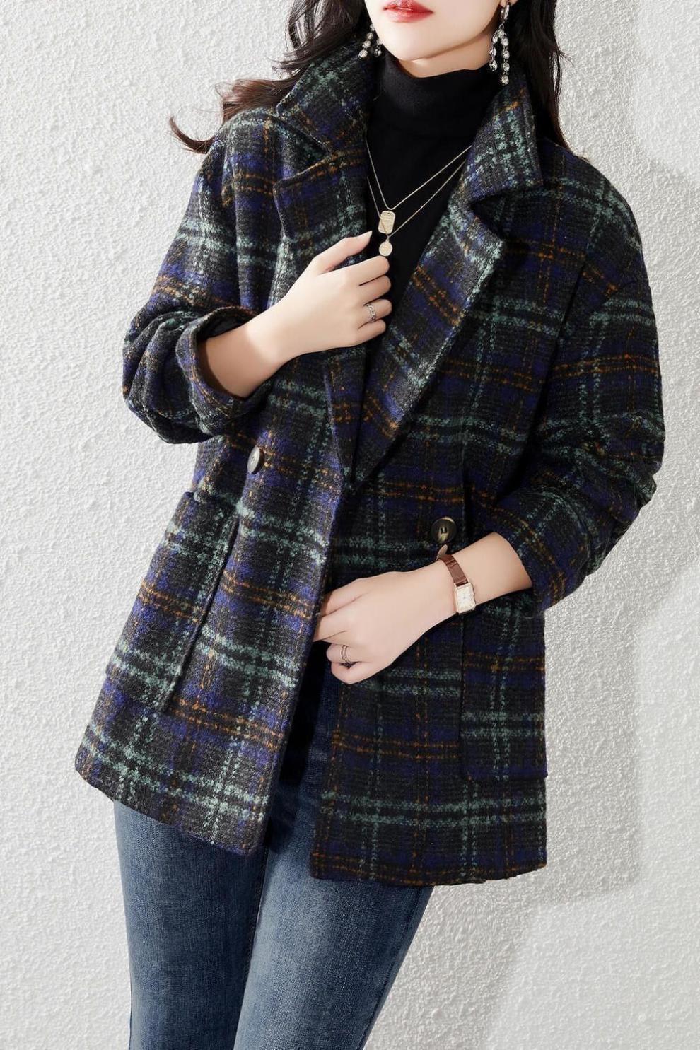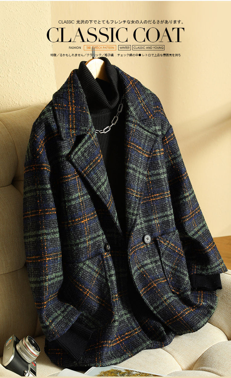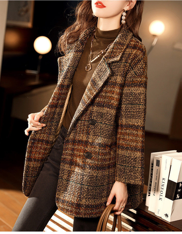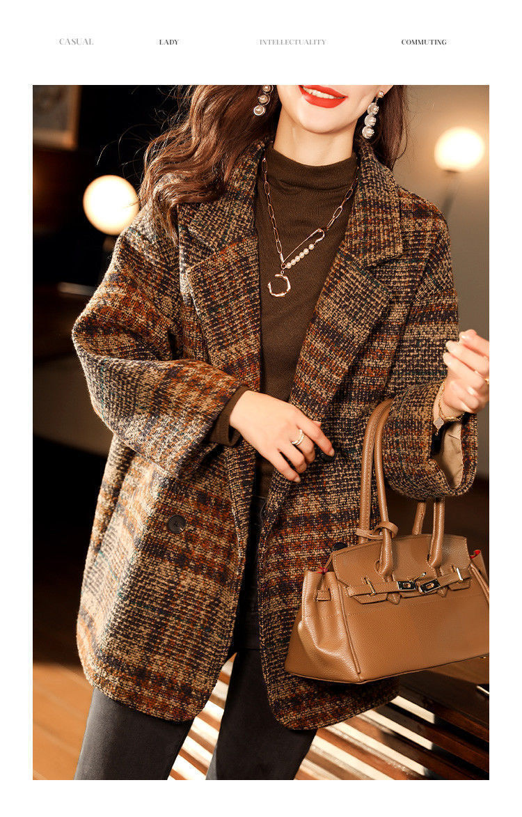 코튼/노 코튼 고급 모직 재킷 여성의 2024 년 봄과 가을 새로운 한국 스타일 느슨한 세트 모직 코트