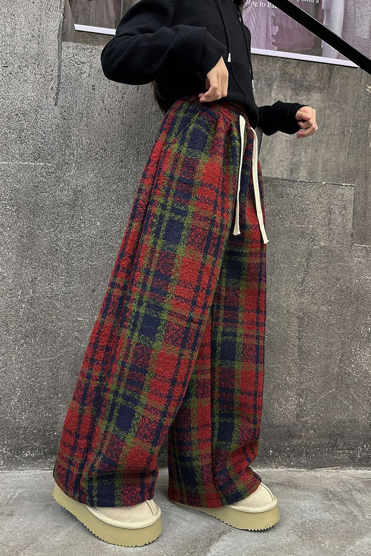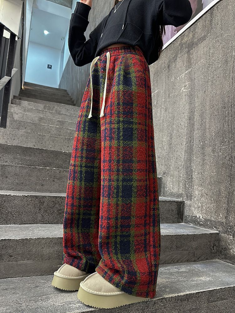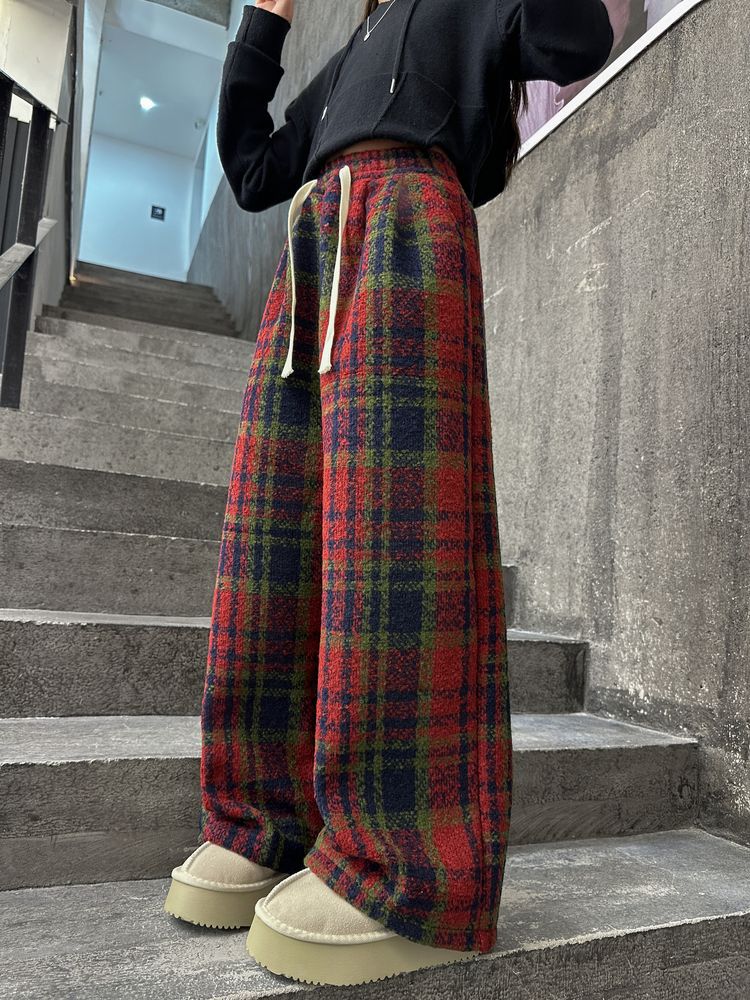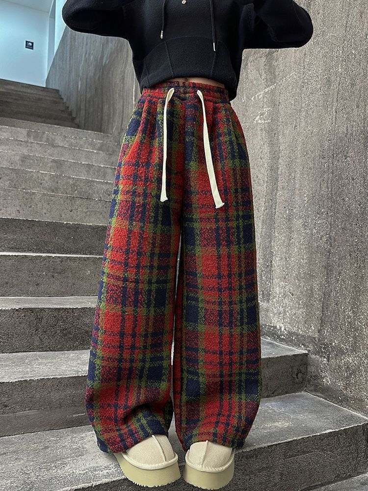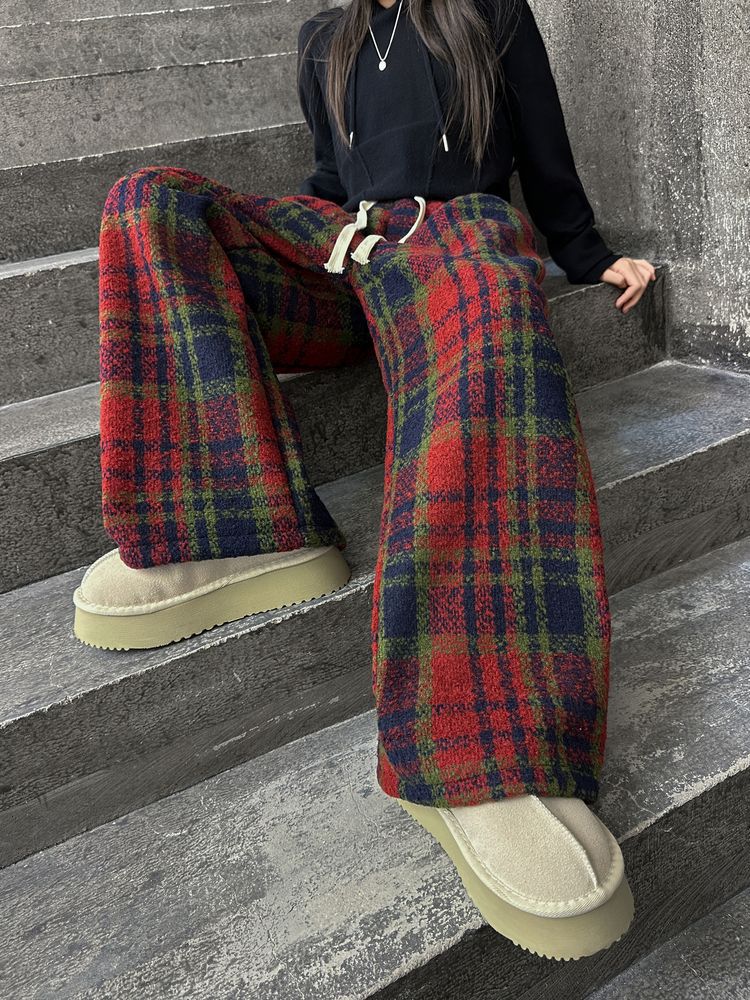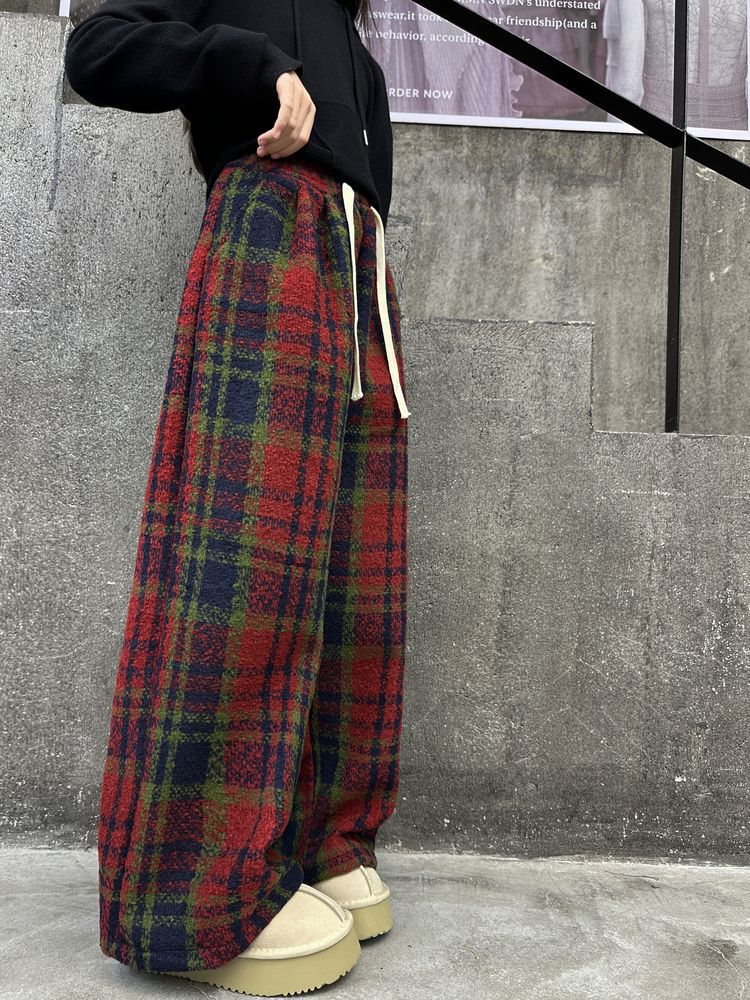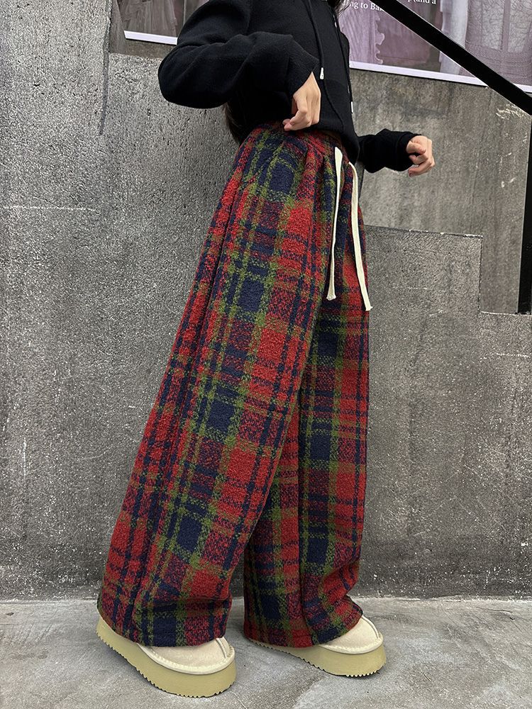여아 캐시미어 바지 외국식 가을과 겨울 어린이 모직 체크 무늬 바지 캐주얼 패션 미디어와 대형 어린이 와이드 레그 팬츠 도매