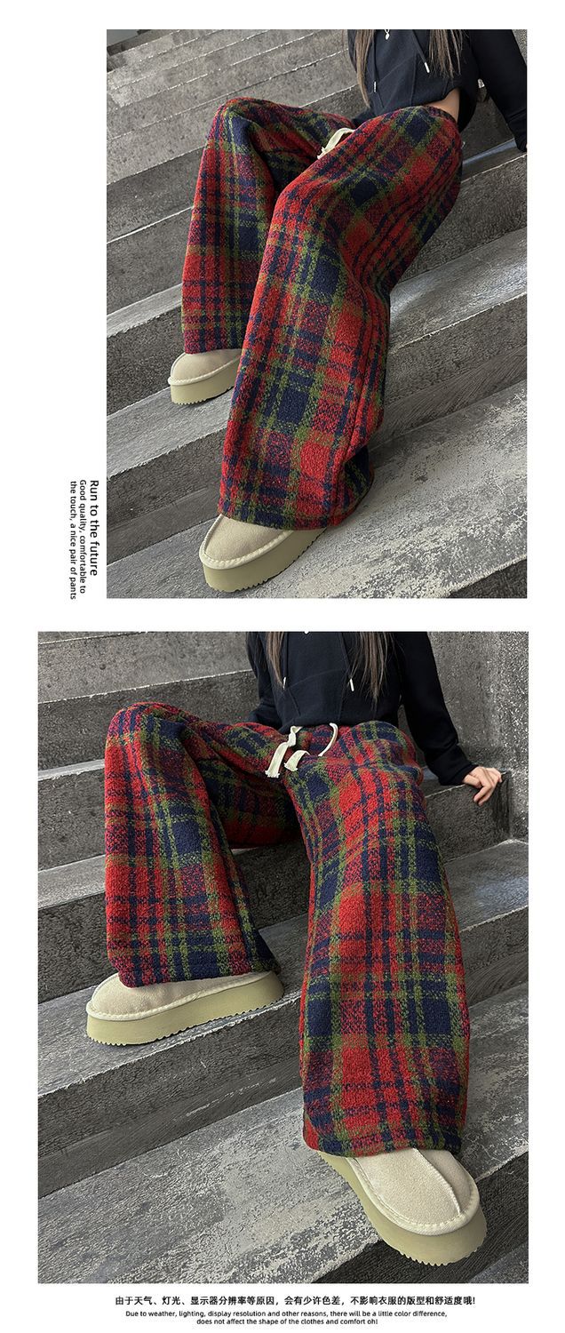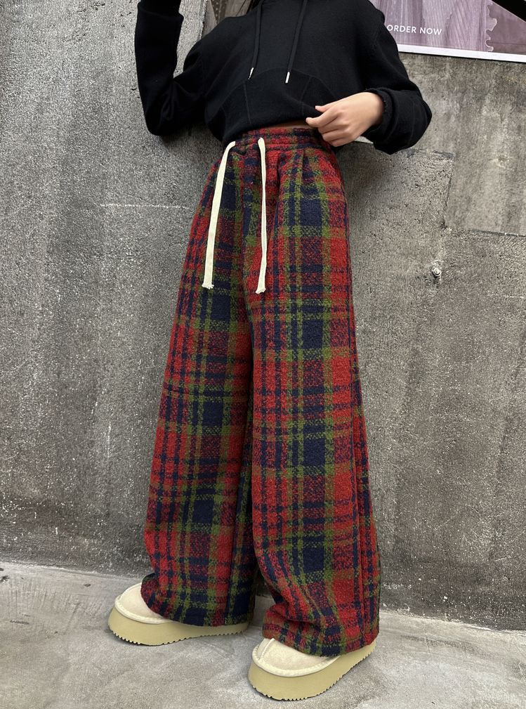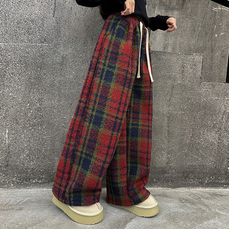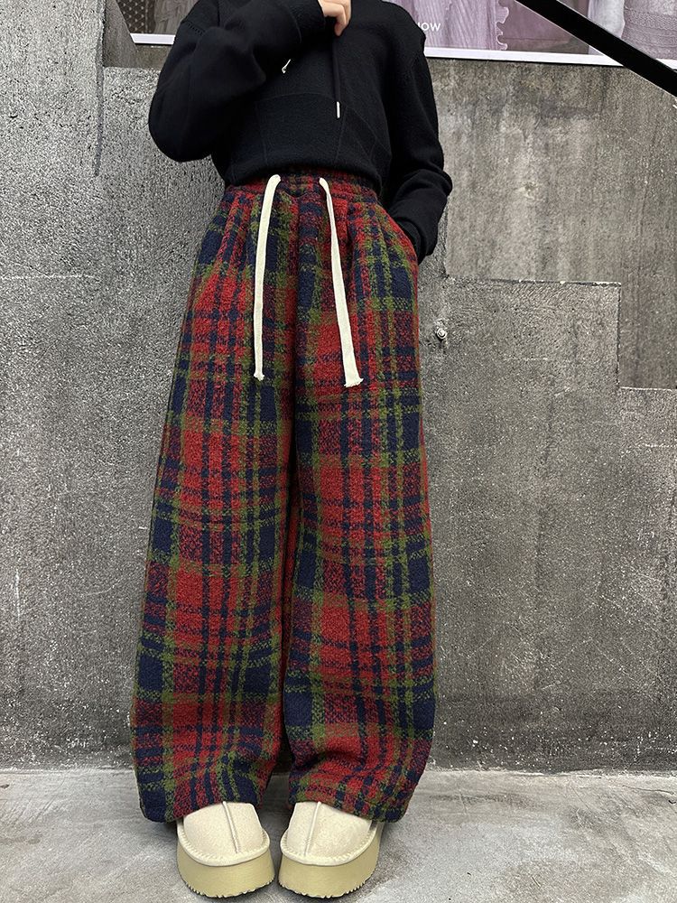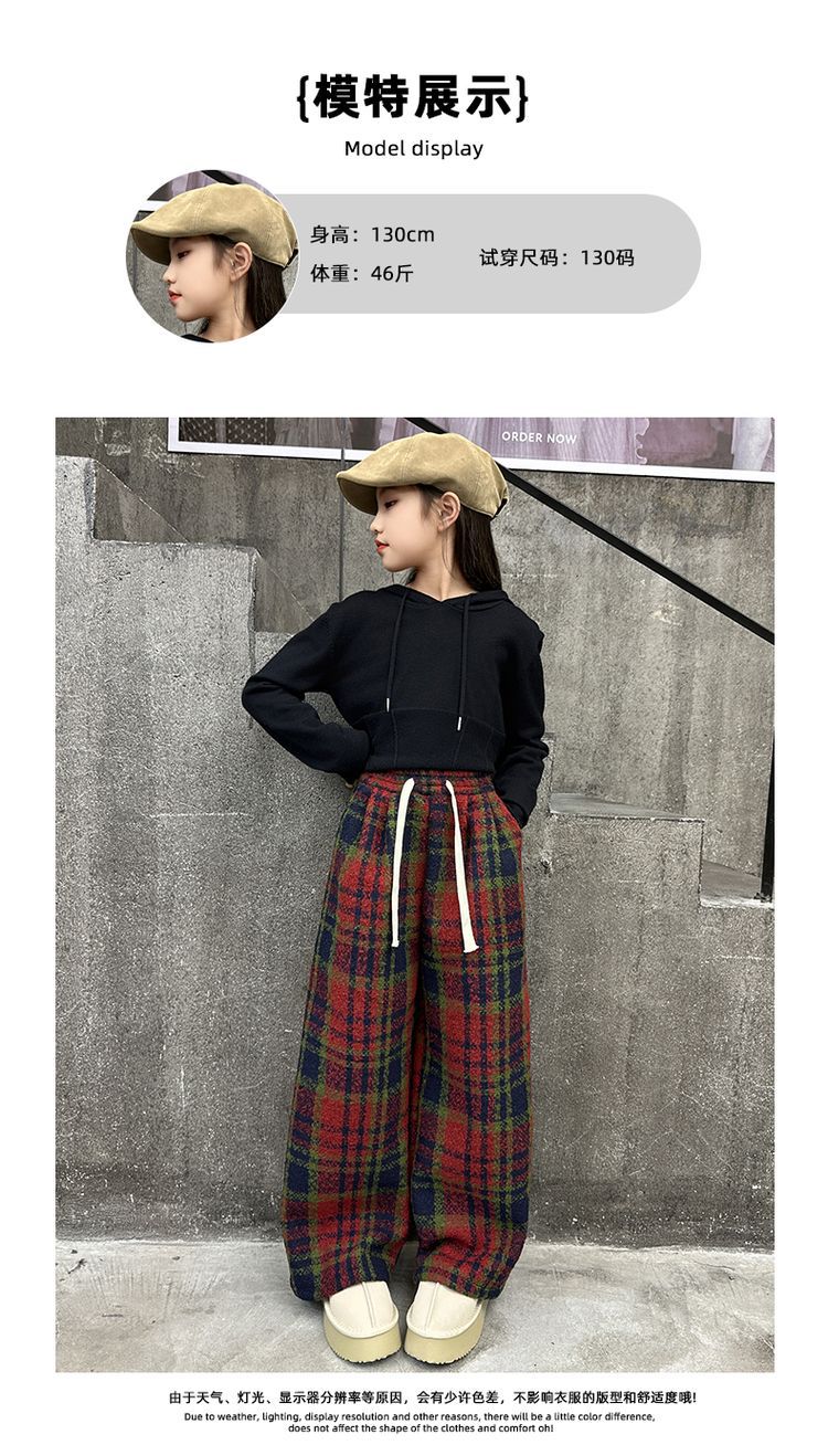 여아 캐시미어 바지 외국식 가을과 겨울 어린이 모직 체크 무늬 바지 캐주얼 패션 미디어와 대형 어린이 와이드 레그 팬츠 도매스토어 가기