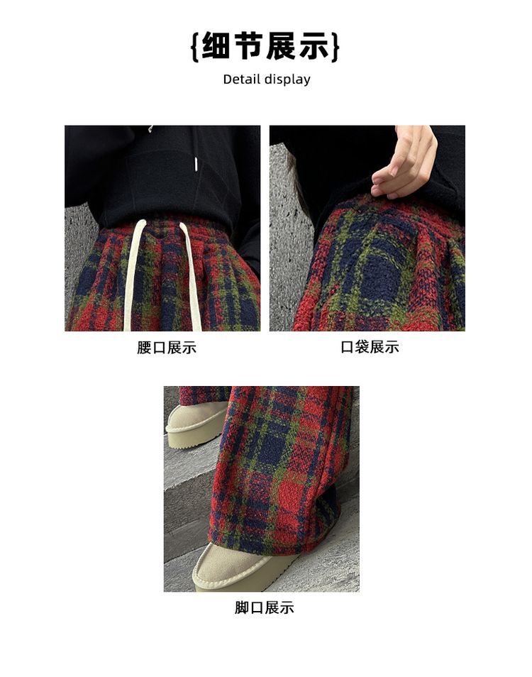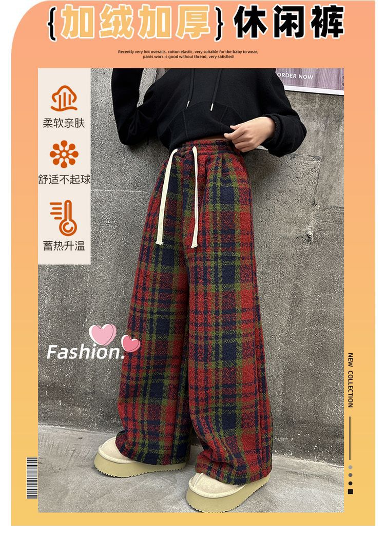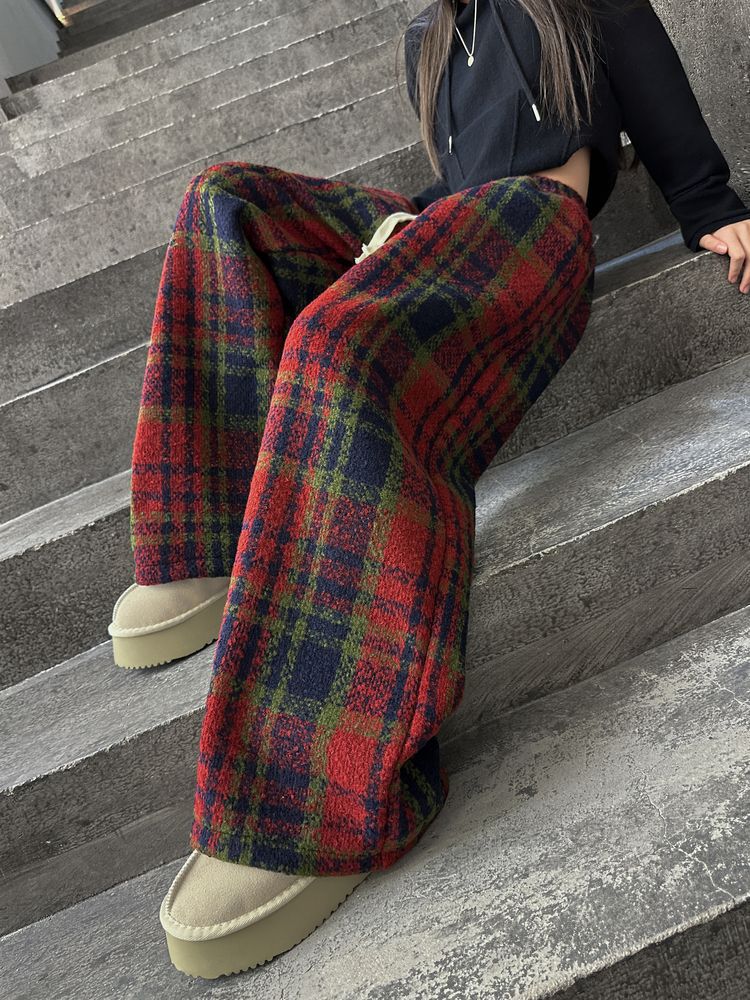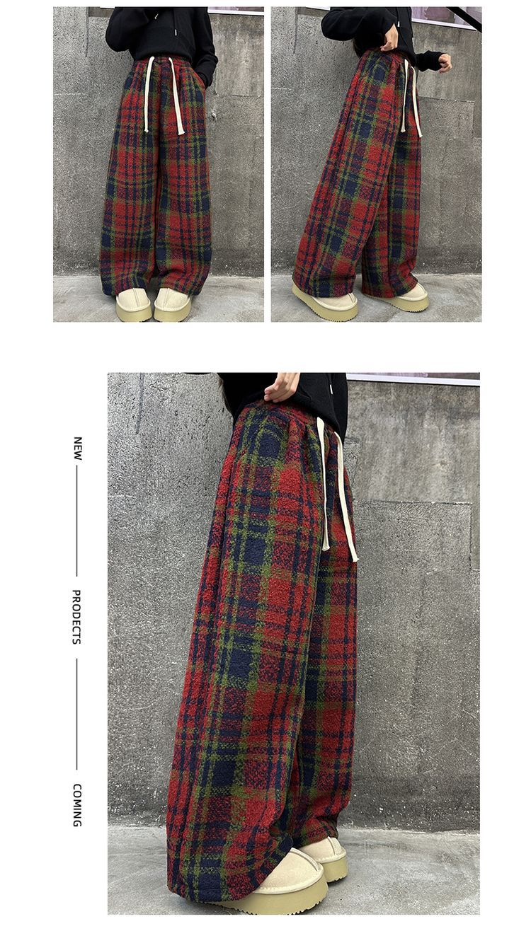 여아 캐시미어 바지 외국식 가을과 겨울 어린이 모직 체크 무늬 바지 캐주얼 패션 미디어와 대형 어린이 와이드 레그 팬츠 도매스토어 가기