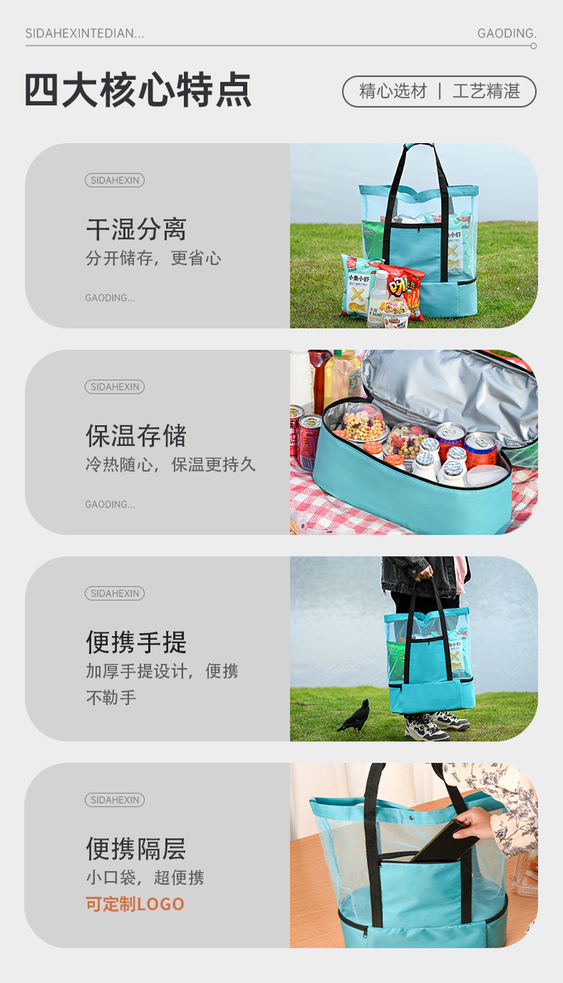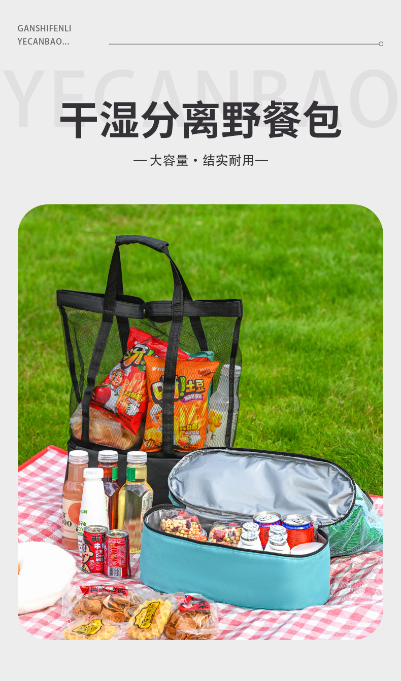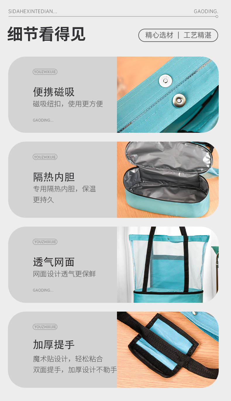국경 간 새로운 휴대용 어깨 단열 가방 더블 레이어 피크닉 가방 아이스 백 남성 및 여성 스포츠 그리드 여행 보관 가방
