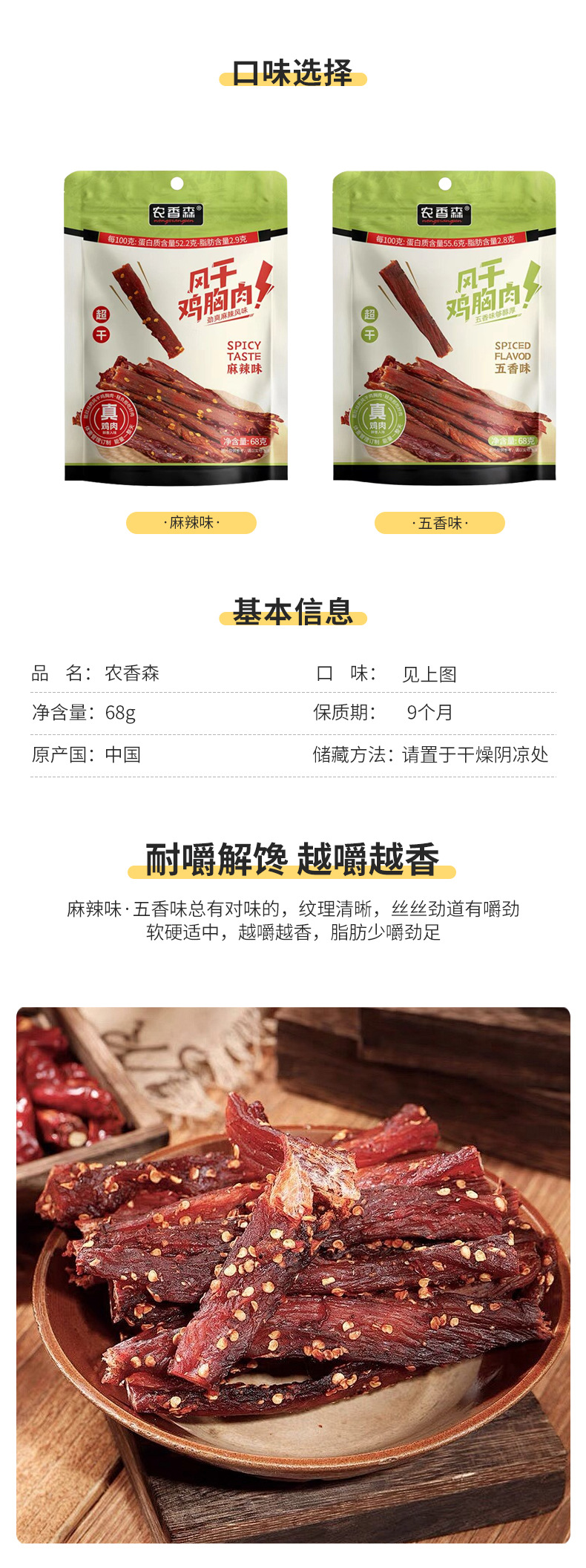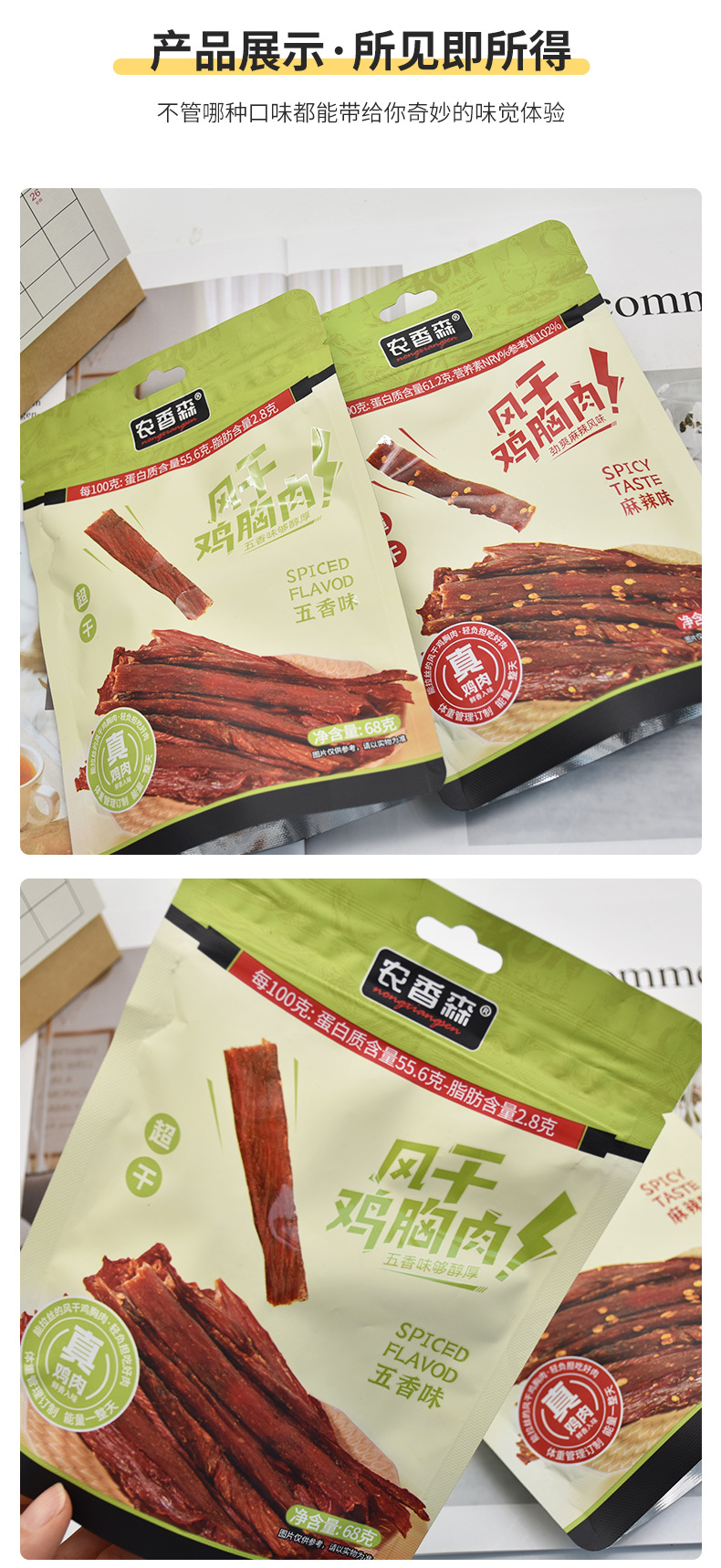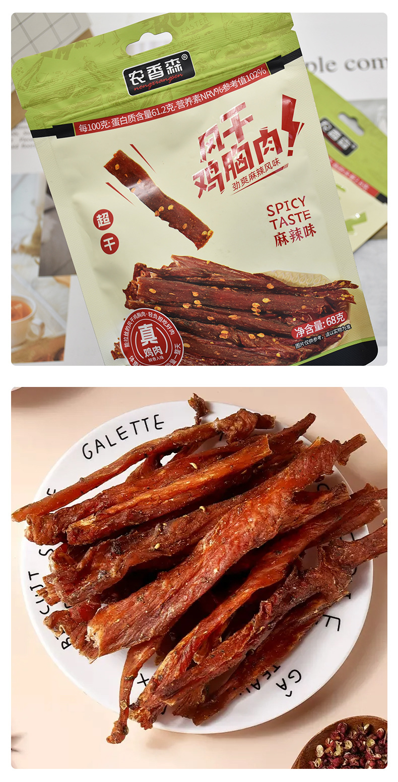 농 샹센 공기 건조 닭 가슴살 가방 68g 매운 손으로 찢은 치킨 스트립 스낵 도매