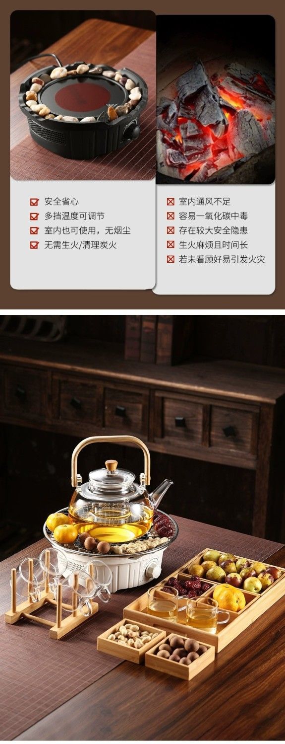 인클로저 스토브 차 끓는 가정용 실내 전기 세라믹 스토브 차 끓는 주전자 2024 새로운 유리 차 끓는 전기 베이킹 스토브 세트스토어 가기