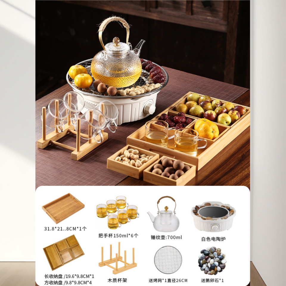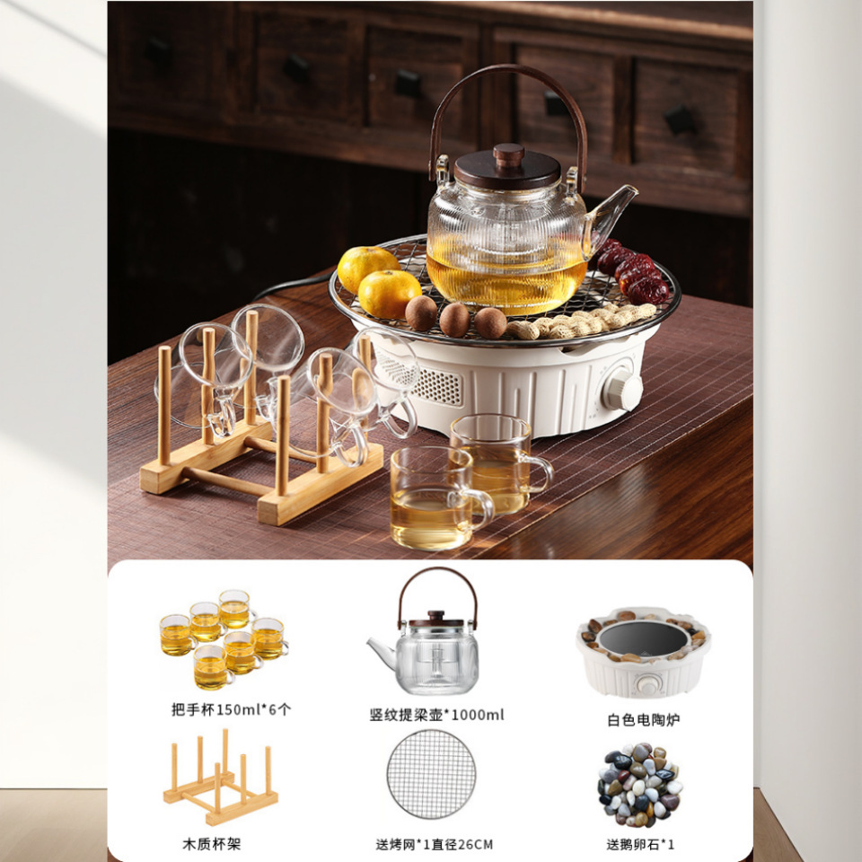 인클로저 스토브 차 끓는 가정용 실내 전기 세라믹 스토브 차 끓는 주전자 2024 새로운 유리 차 끓는 전기 베이킹 스토브 세트