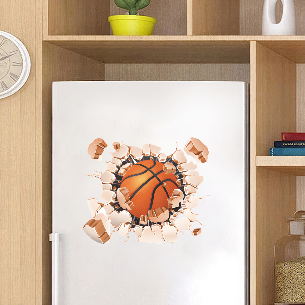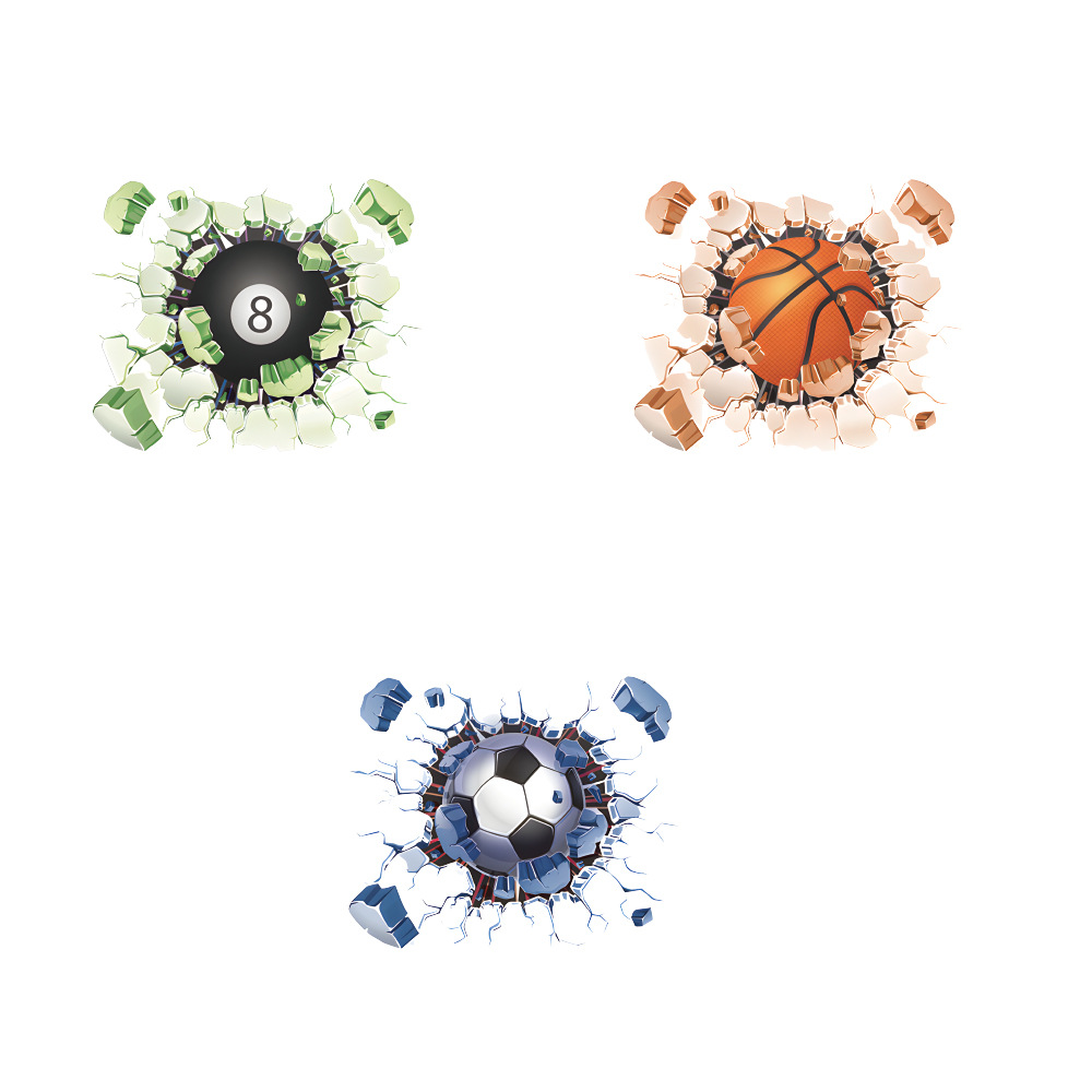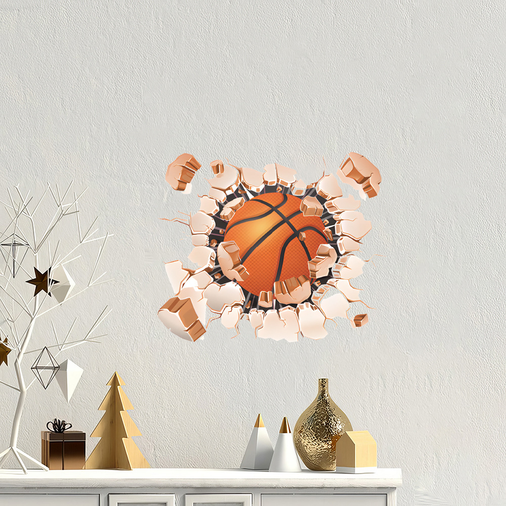 3d 깨진 벽 스포츠 농구 당구 축구 배경 벽 벽지 자체 접착 침실 장식 욕실 벽 스티커