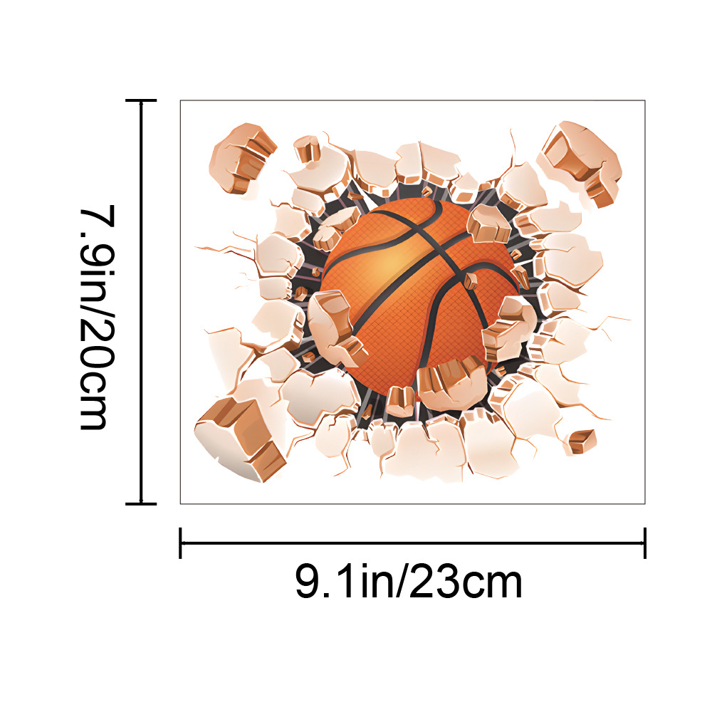 3d 깨진 벽 스포츠 농구 당구 축구 배경 벽 벽지 자체 접착 침실 장식 욕실 벽 스티커스토어 가기