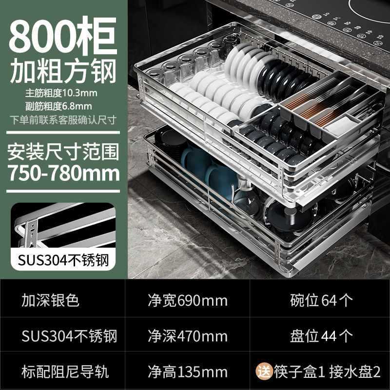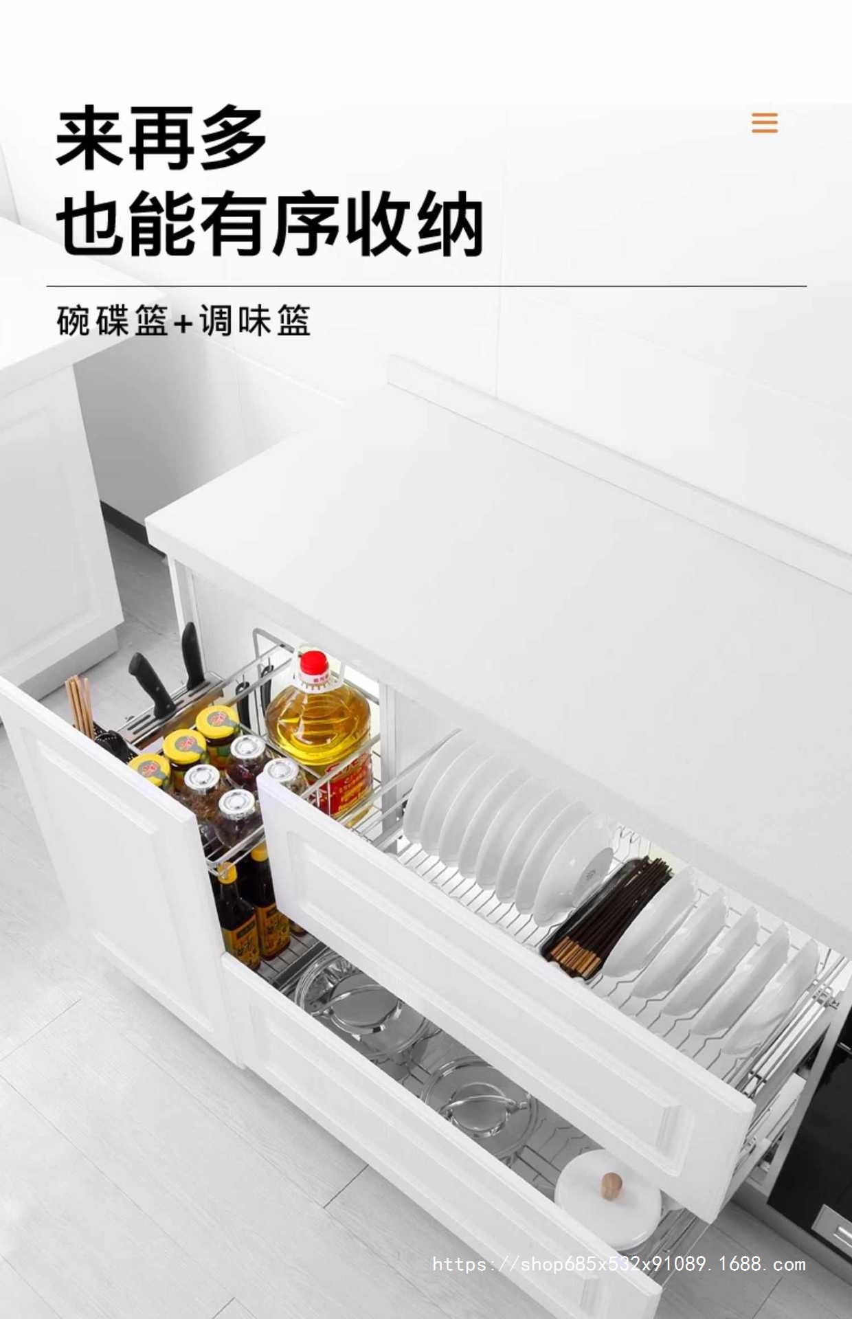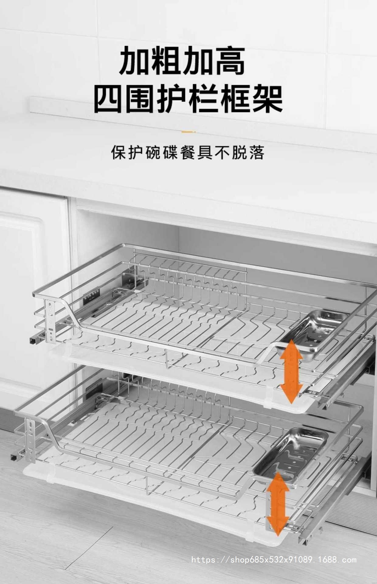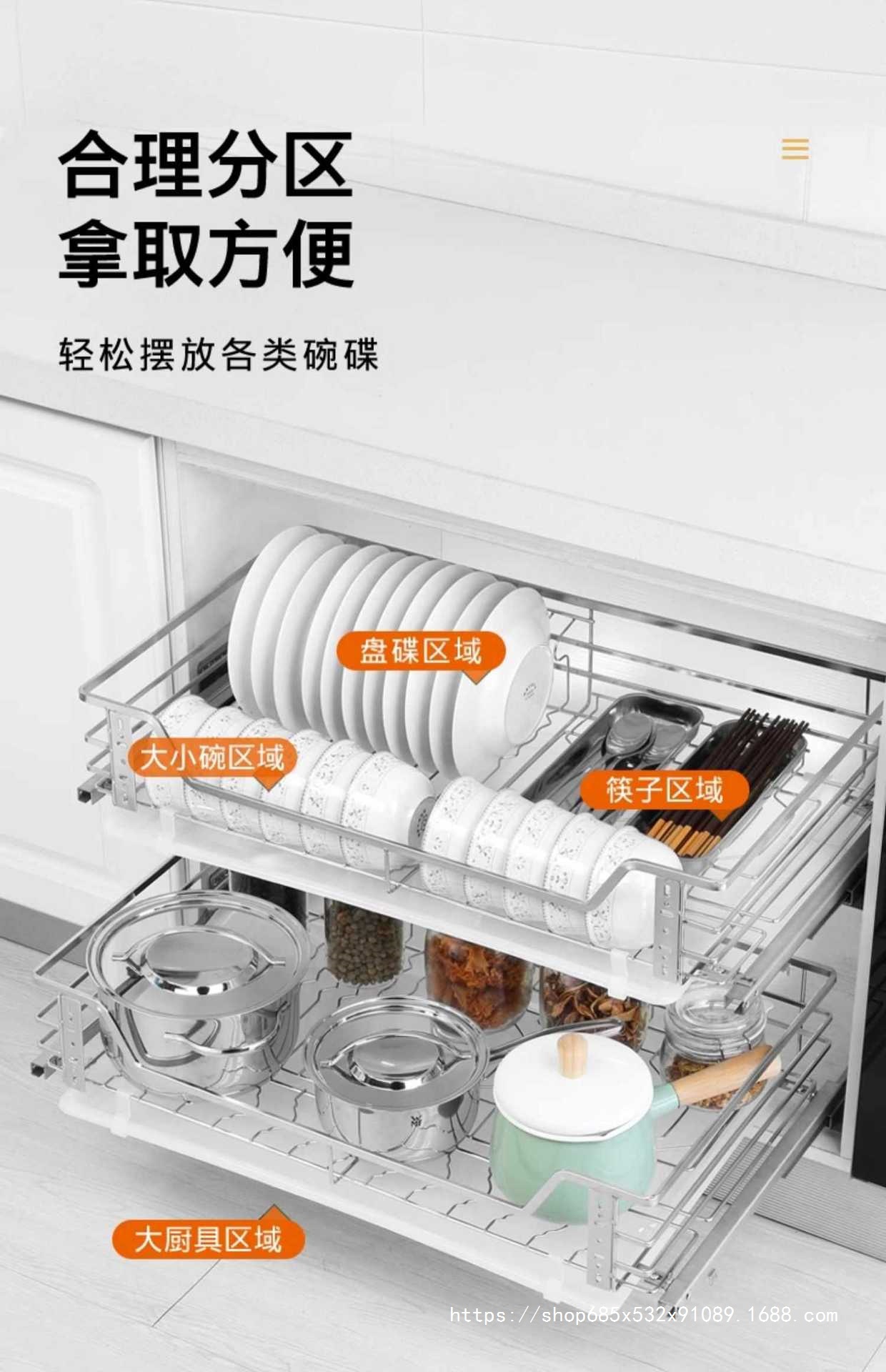 캐비닛 바구니 304 스테인레스 스틸 더블 서랍 주방 접시 바구니 주방 캐비닛 버퍼 댐핑 보관 조미료 바구니스토어 가기