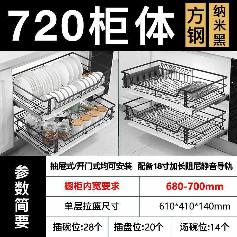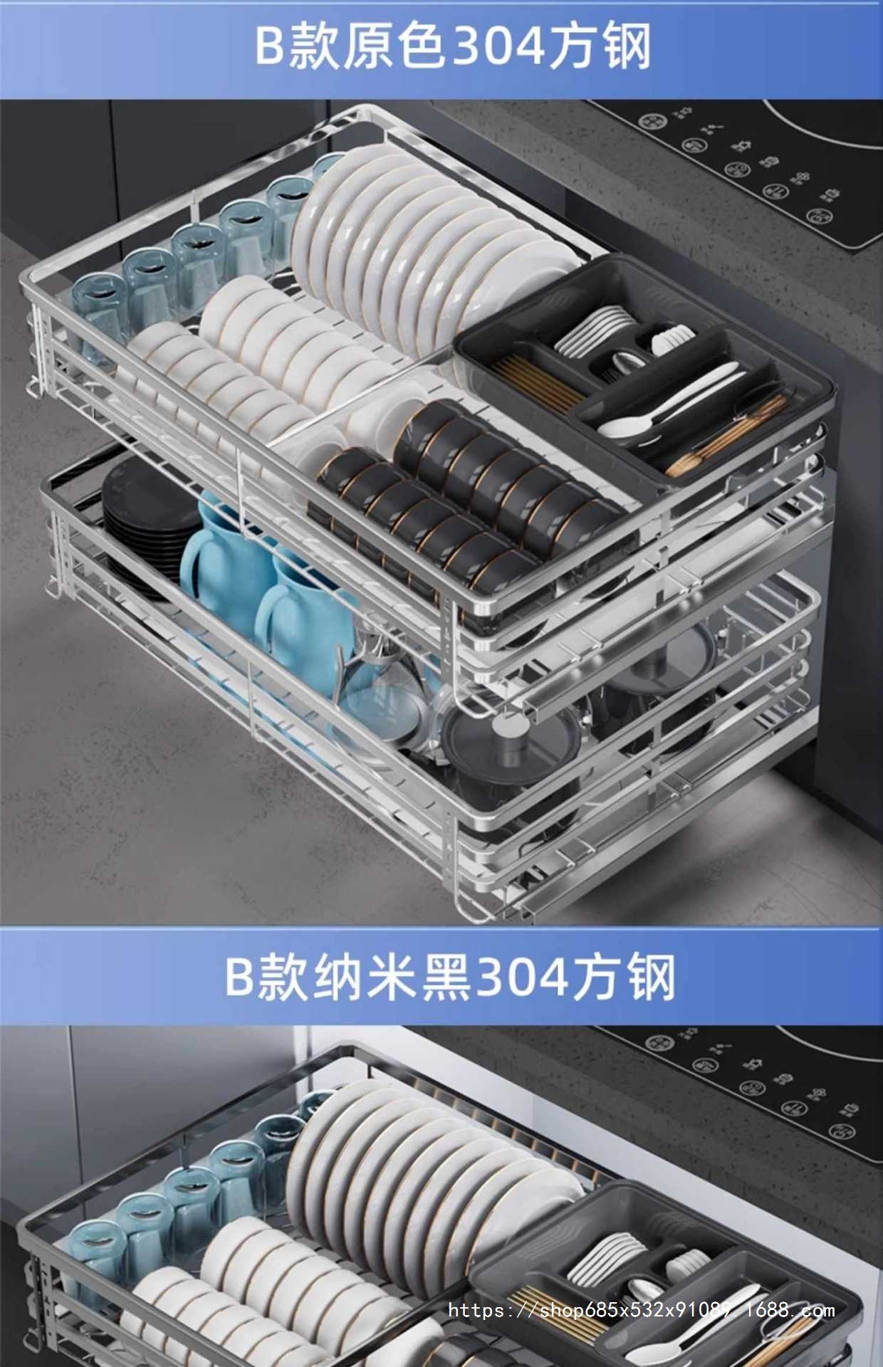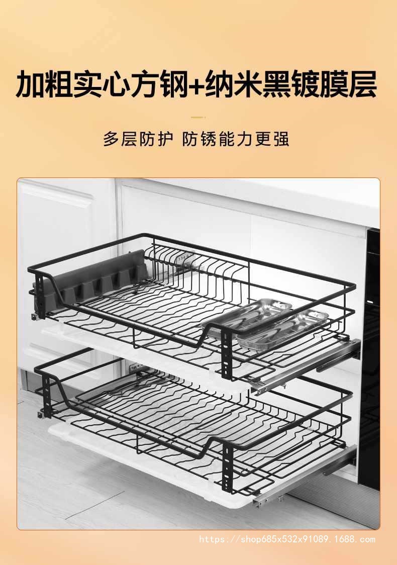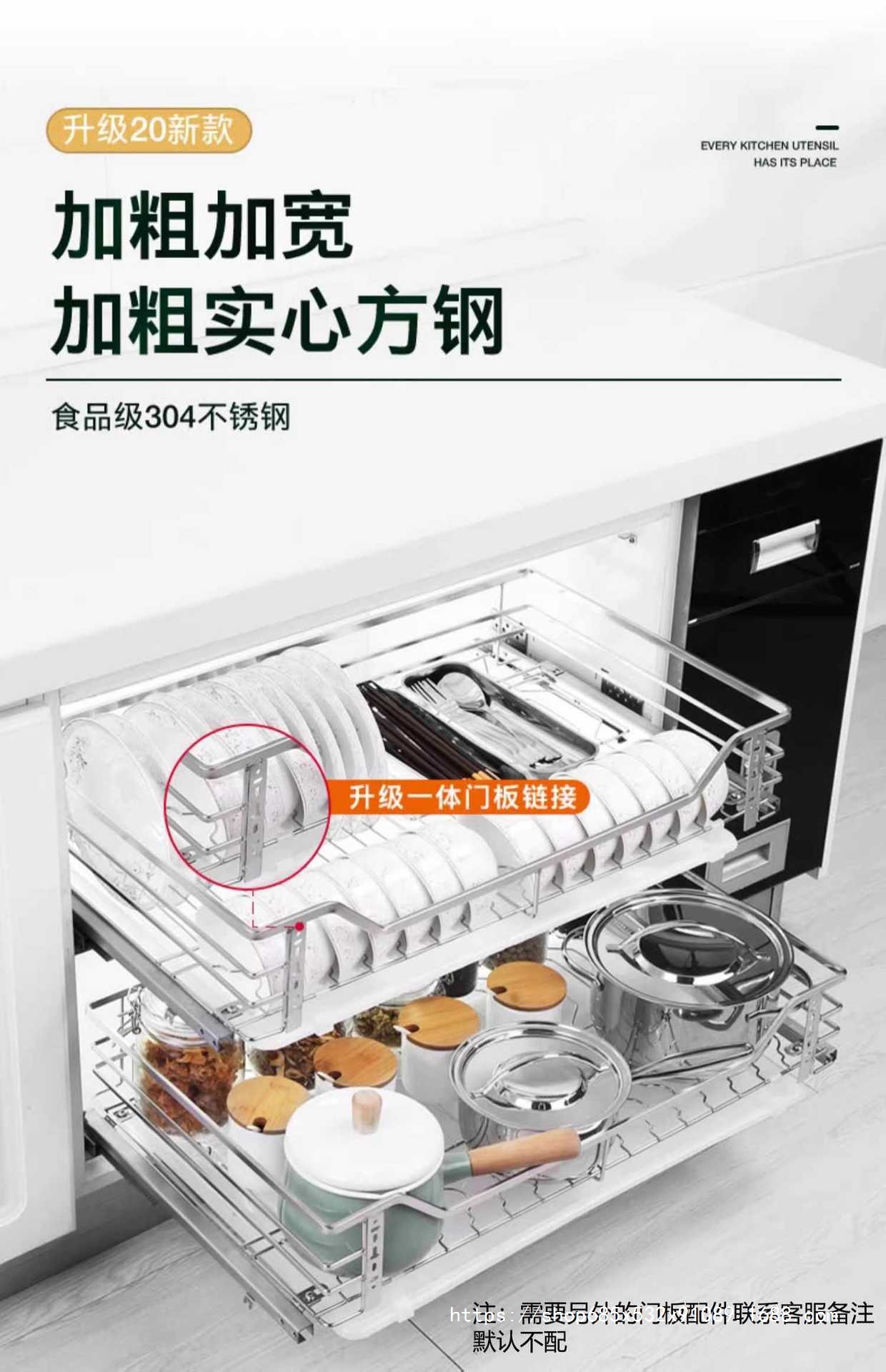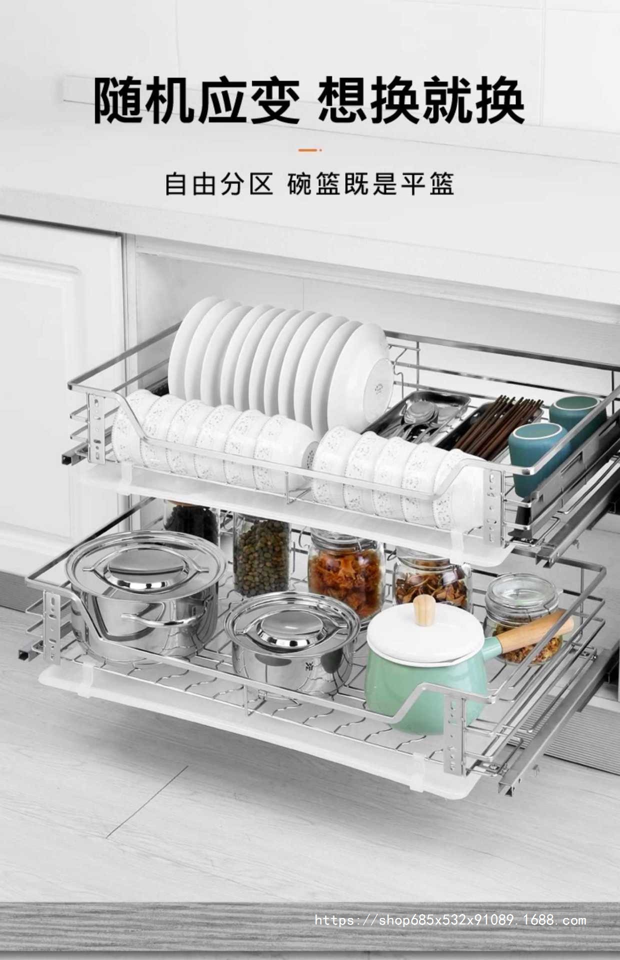 캐비닛 바구니 304 스테인레스 스틸 더블 서랍 주방 접시 바구니 주방 캐비닛 버퍼 댐핑 보관 조미료 바구니스토어 가기