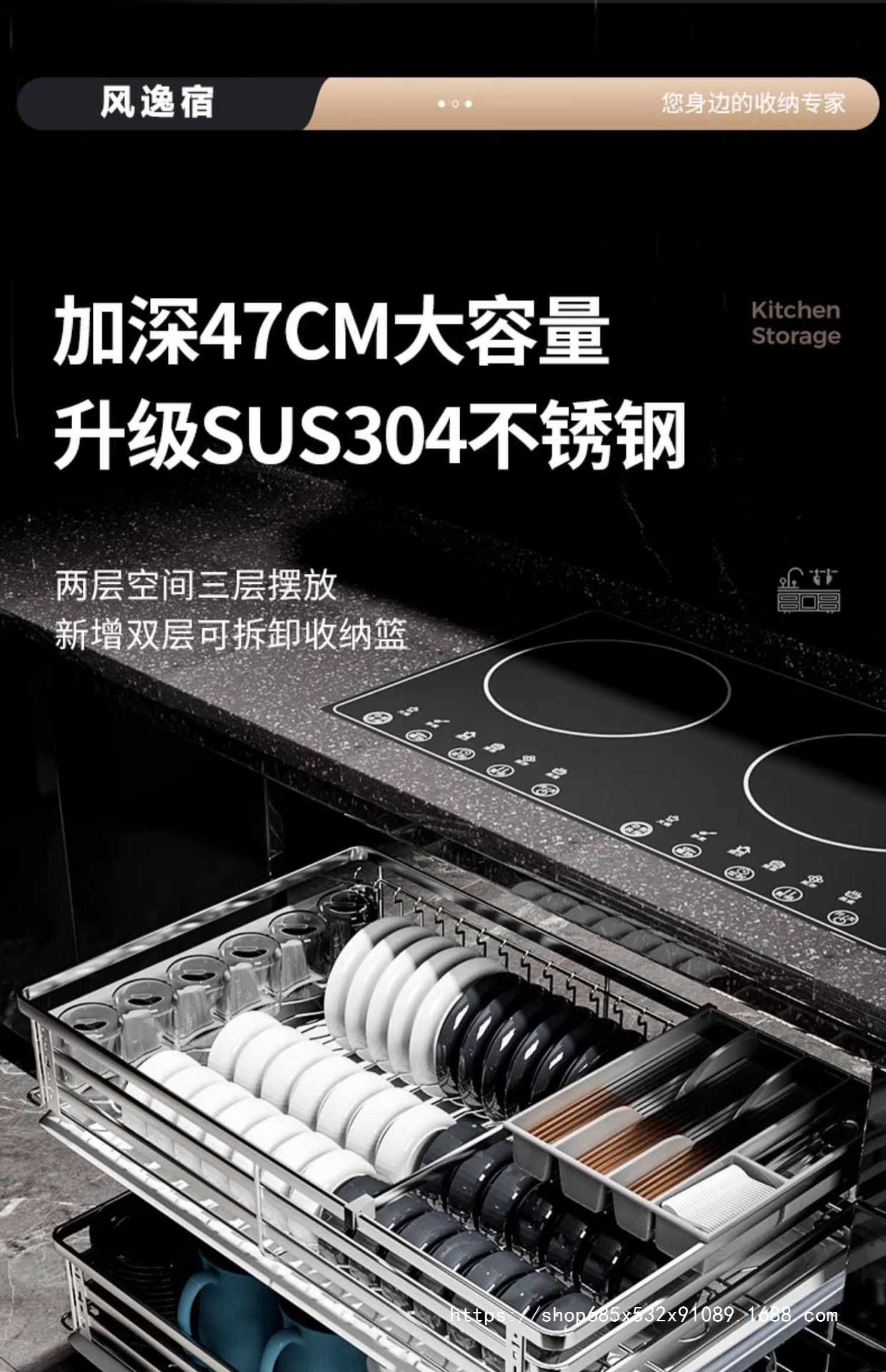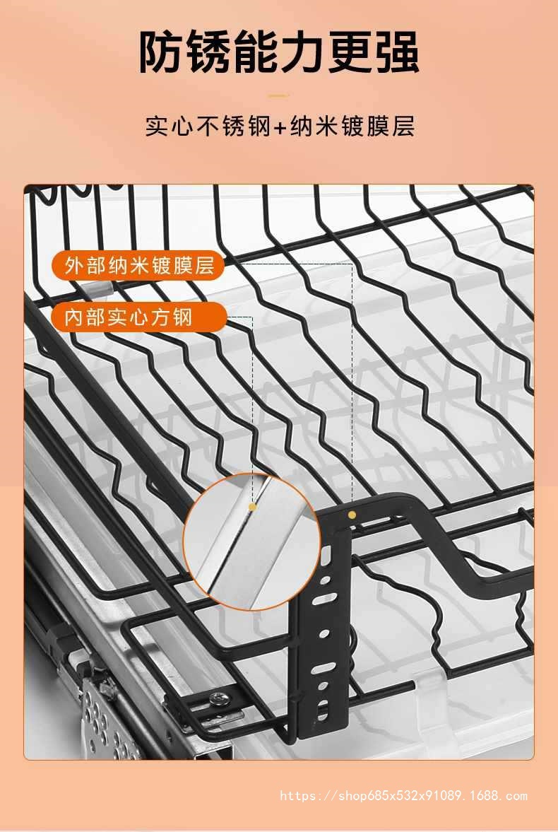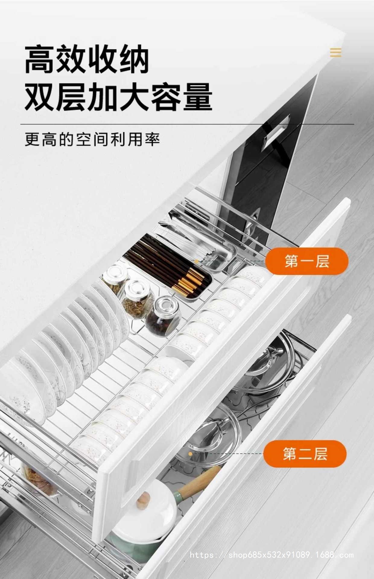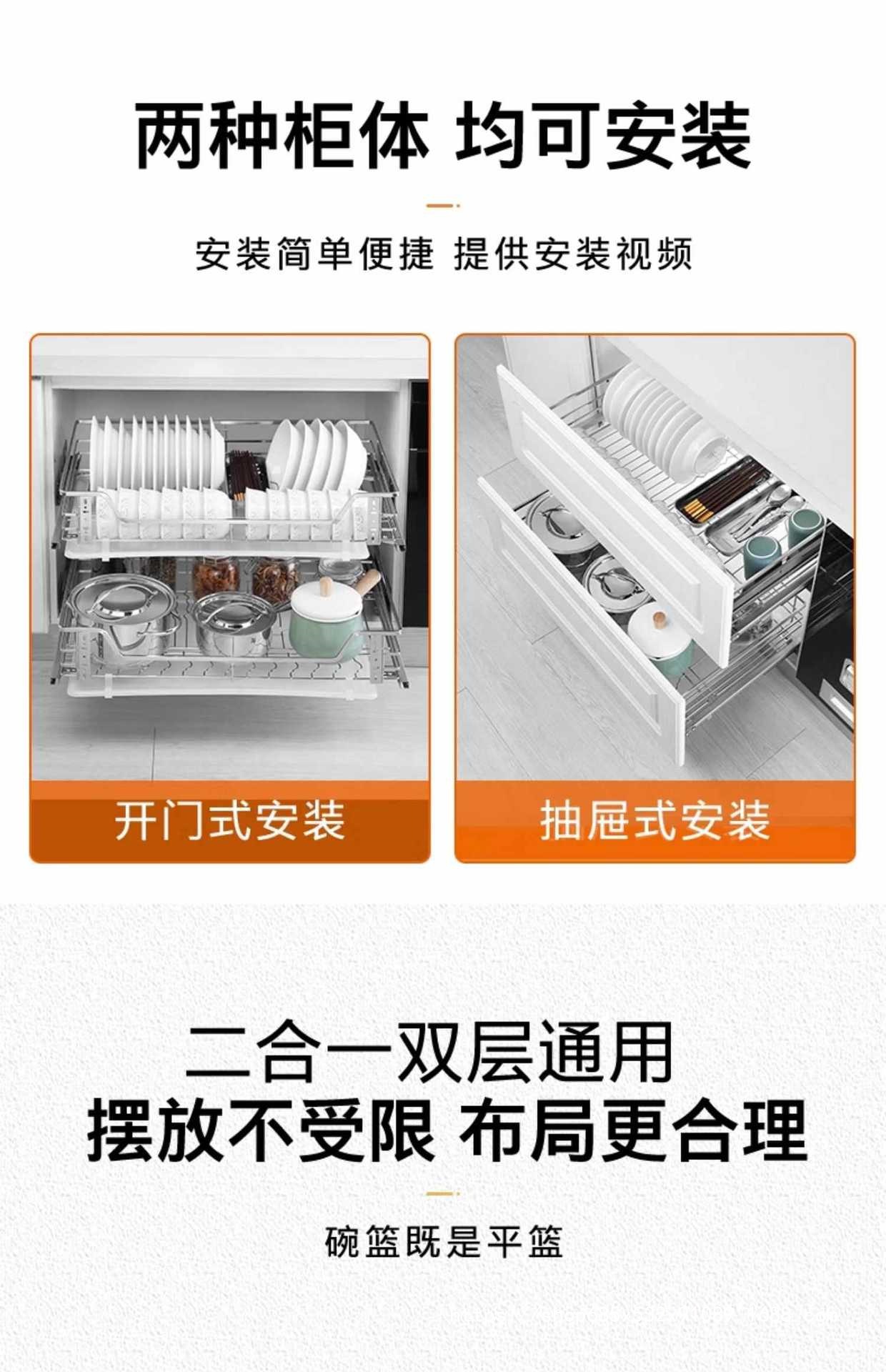 캐비닛 바구니 304 스테인레스 스틸 더블 서랍 주방 접시 바구니 주방 캐비닛 버퍼 댐핑 보관 조미료 바구니스토어 가기