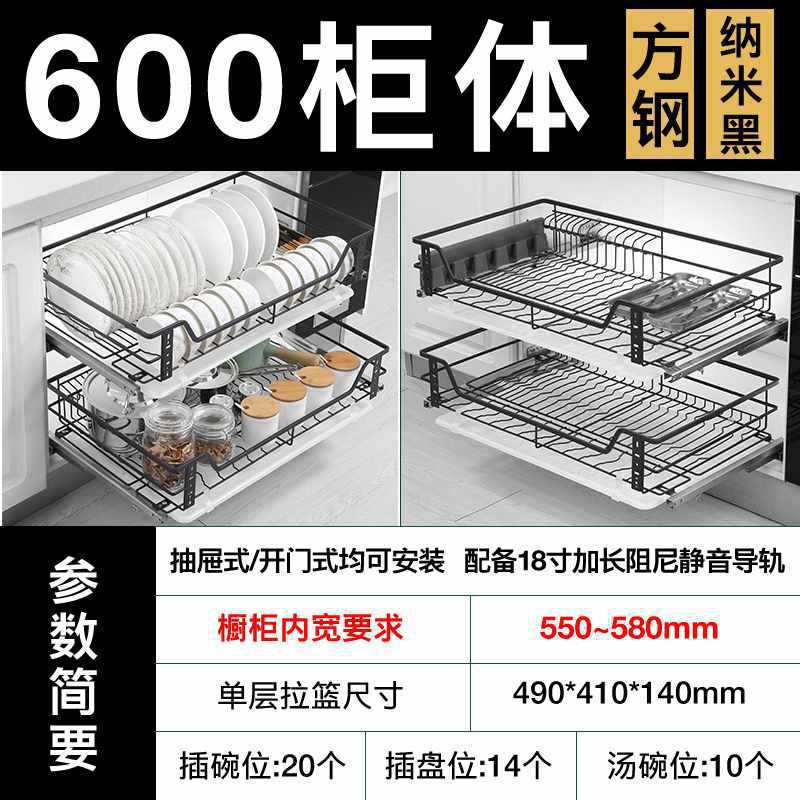 • 업그레이드된 나노 블랙 사각 스틸 더블 레이어 600 캐비닛 - 젓가락 상자와 물 트레이 포함 - 더블 레이어 - 서랍형