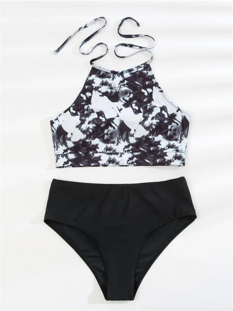 2025 유럽 및 미국 인쇄 목과 가슴 포장 비치 비키니 알리 익스프레스 섹시한 높은 허리 삼각형 온천 분할 수영복스토어 가기