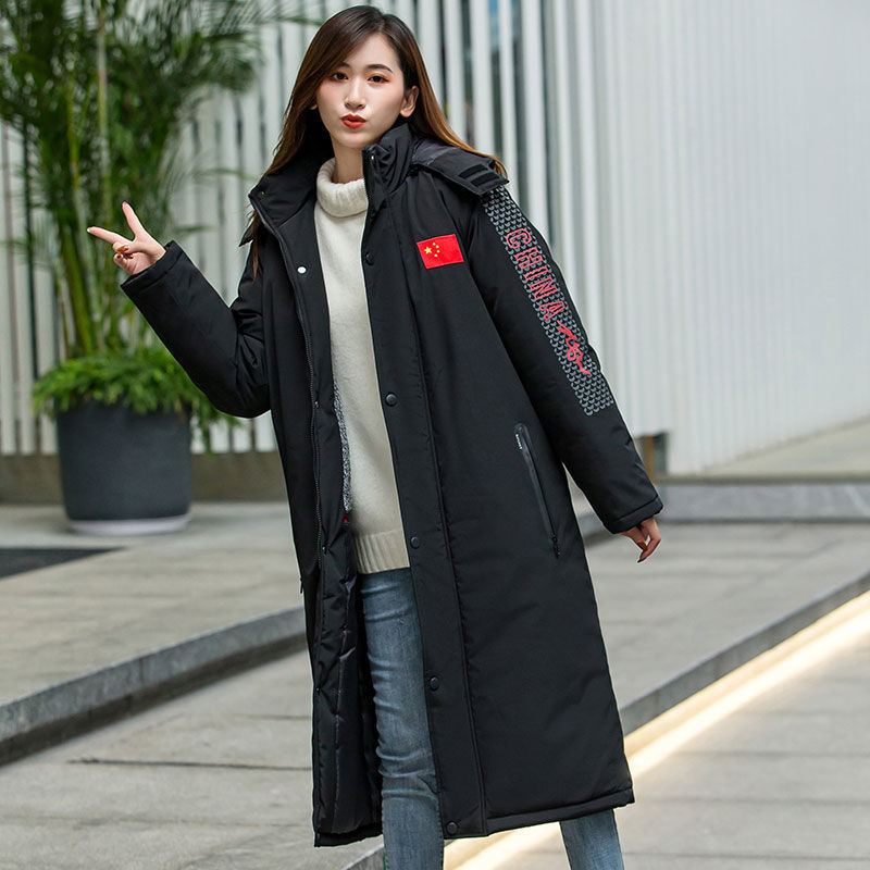 겨울 따뜻한 코트 남자와 여자의 느슨한 무릎 위 스포츠 롱 코트 스포츠 훈련 옷 두껍게스토어 가기