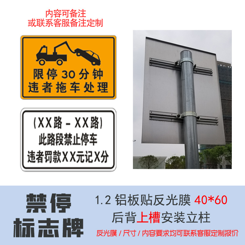 전체 도로 구간은 정지 금지, 정지 불법, 정지 불법, 정지 불법, 정지 불법, 정지 불법, 정지 불법, 정지 불법, 포획 경고, 반사 알루미늄 판스토어 가기