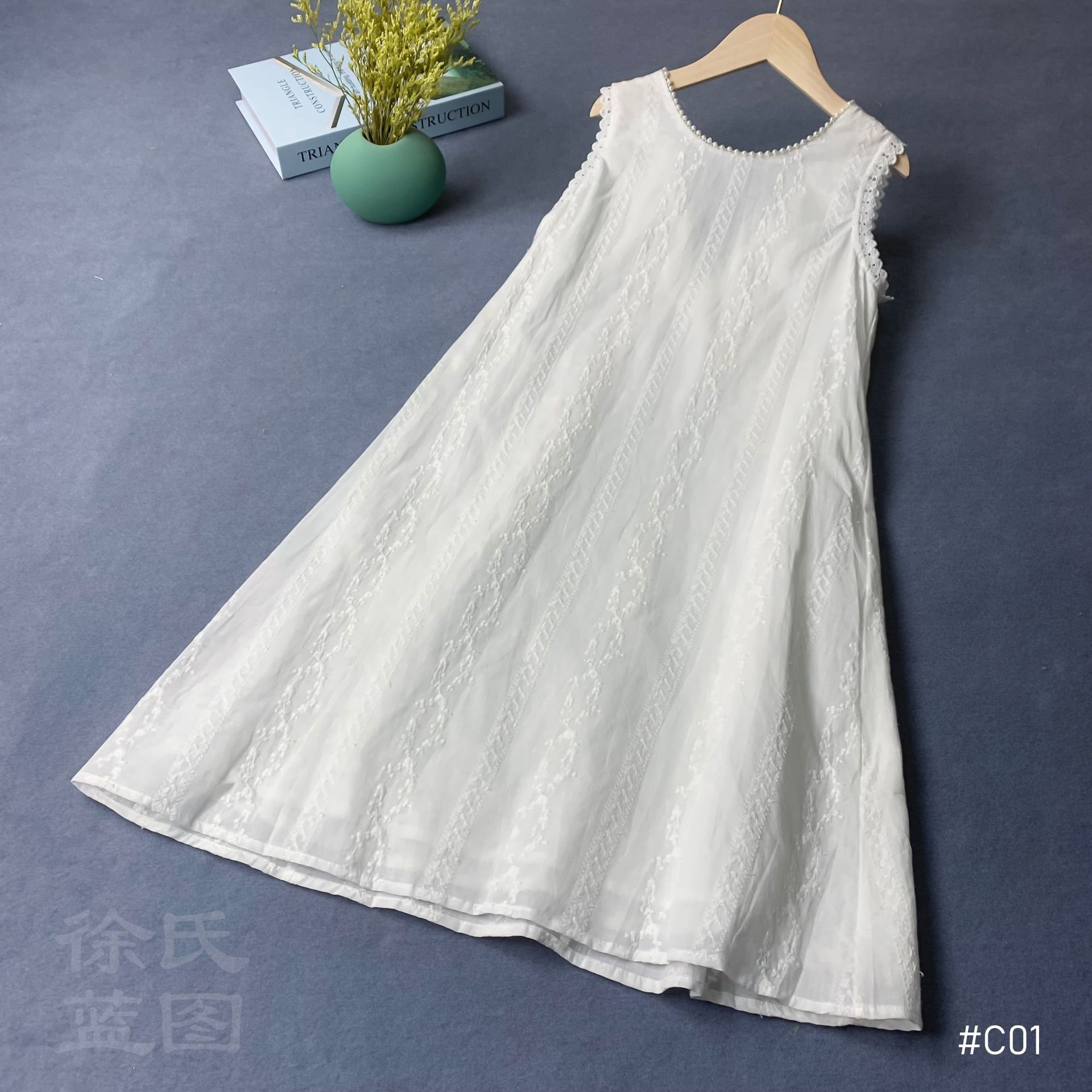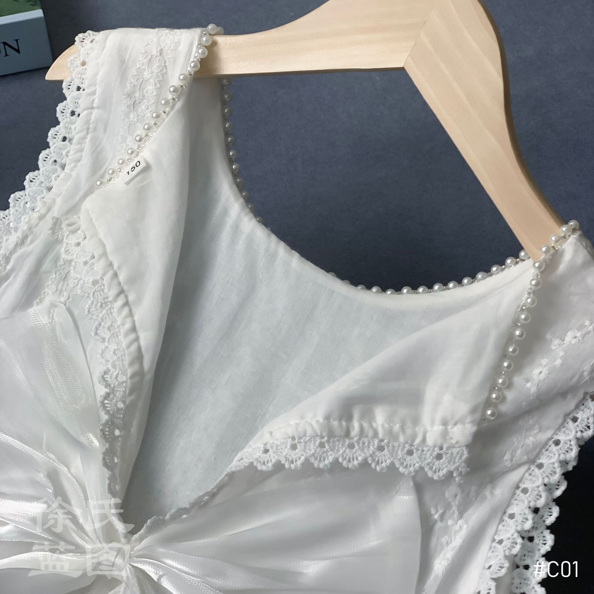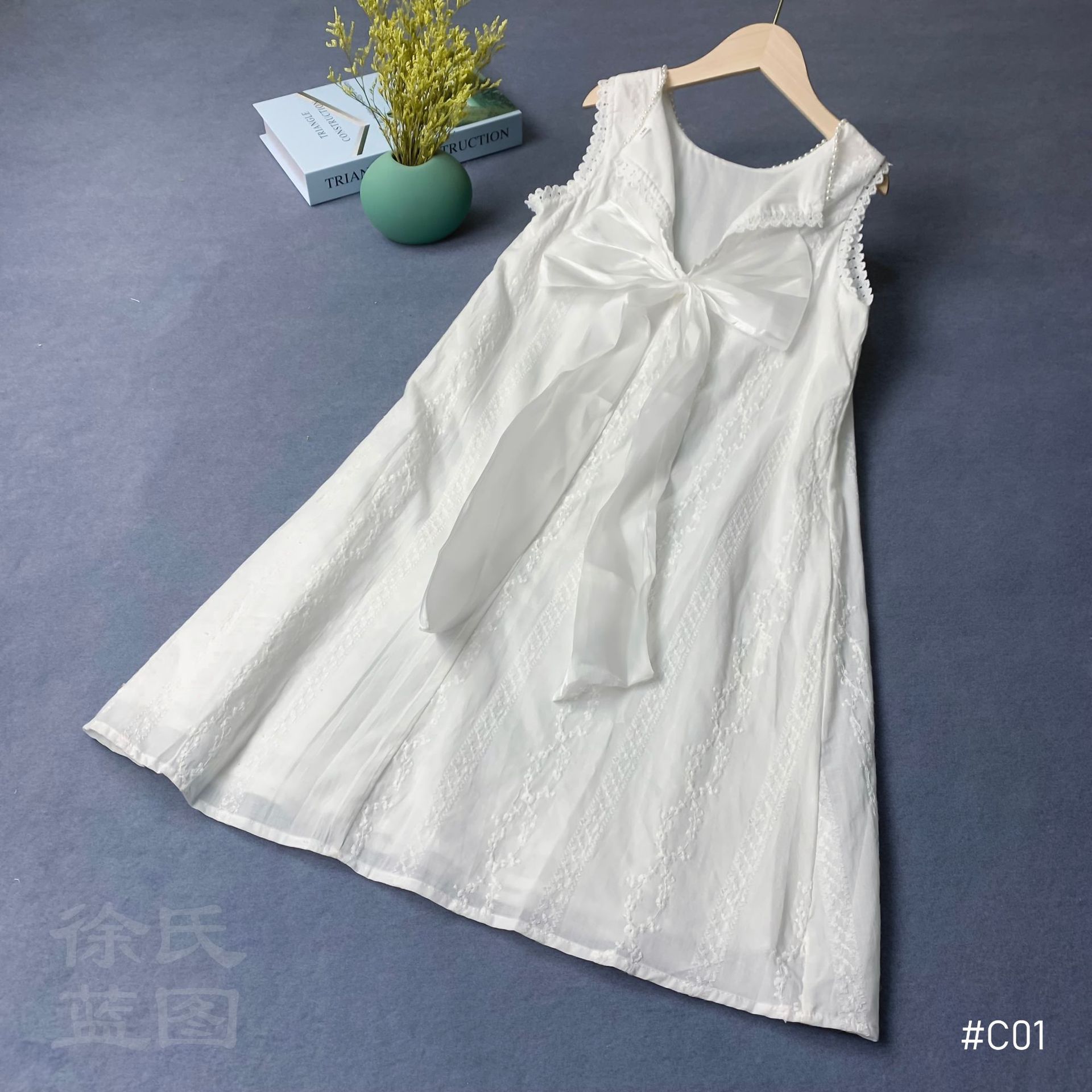 넥타이 염색 화이트 빌렛 걸스 화이트 원피스 어린이 여름 레이스 자수 느슨한 민소매 화이트 원피스