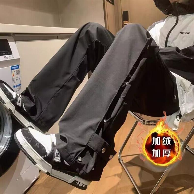 버클 브레스트 충전 팬츠 남성용 가을 및 겨울 미국식 바이브 기능성 마이크로 팬츠와 트렌디 한 브랜드 느슨한 기모 캐주얼 바지스토어 가기