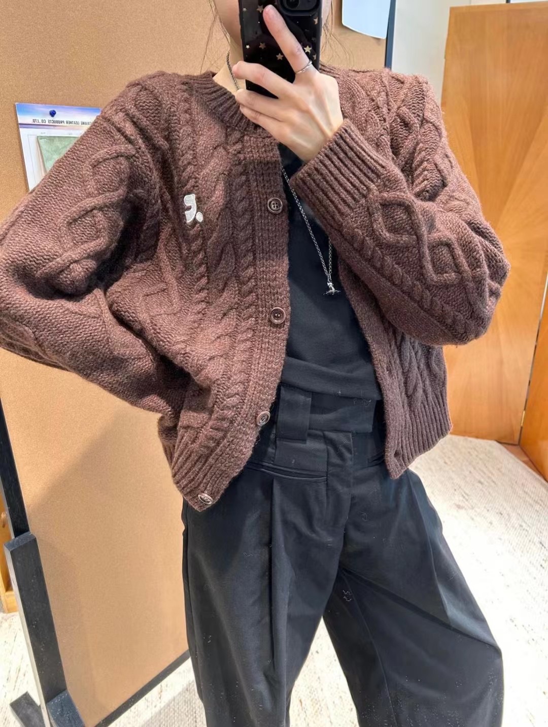 고급 버전! Rest RR 클로티팀 자수 RR 트위스트 니트 가디건 레트로 스웨터 여성용 트렌디스토어 가기