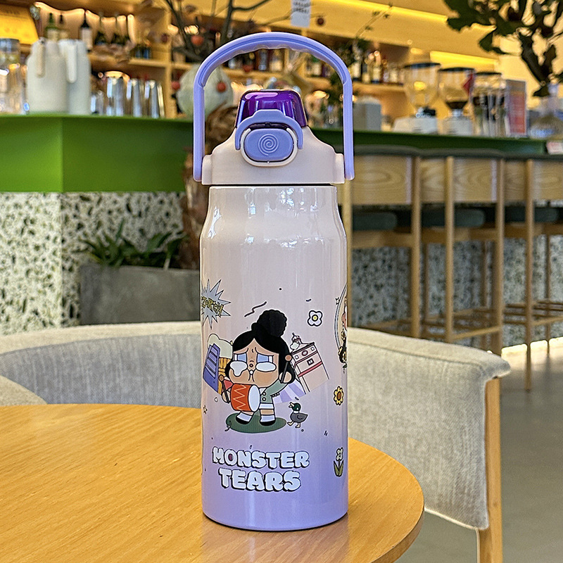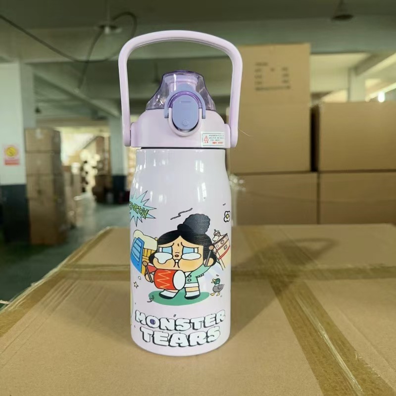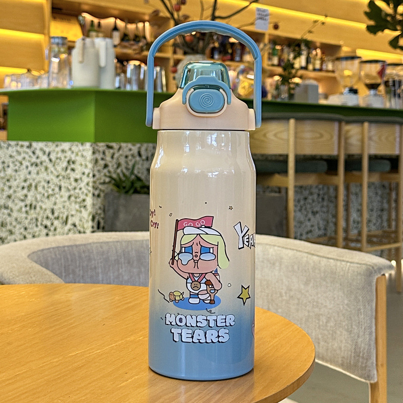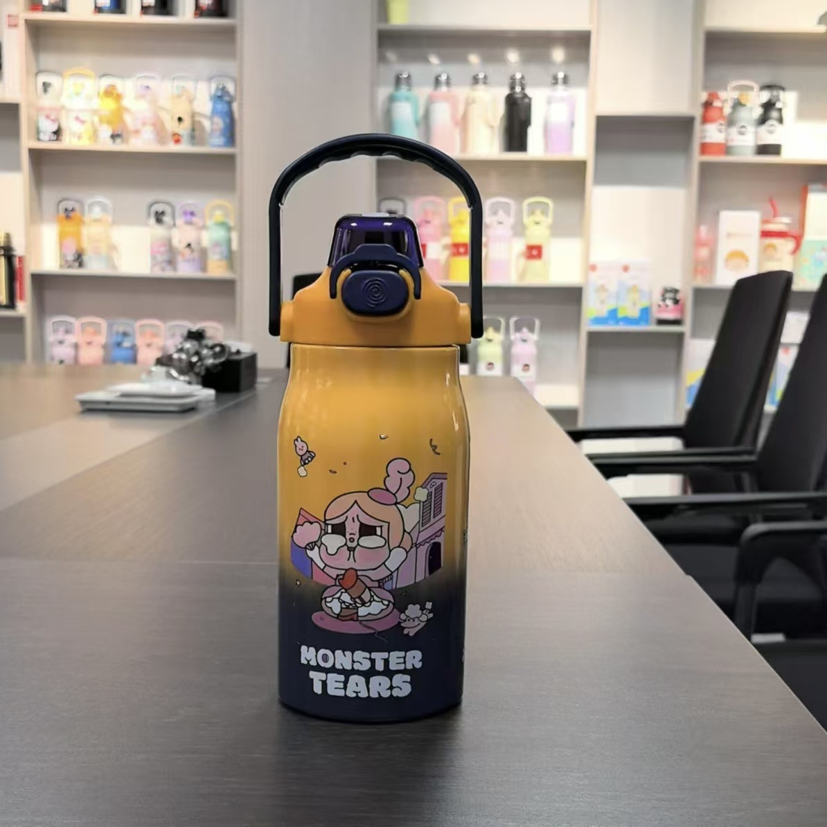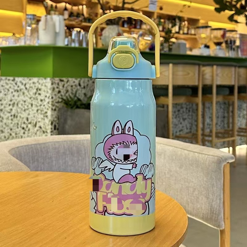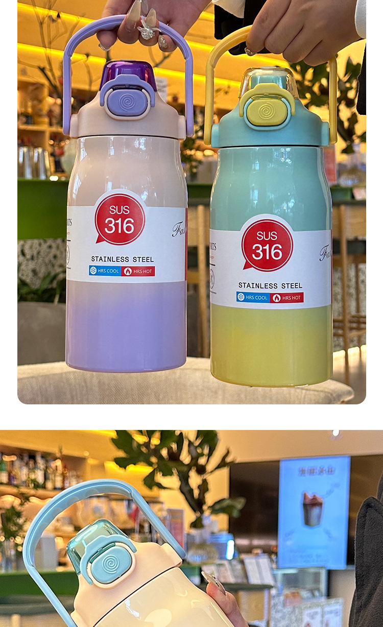 국경 새로운 그라디언트 3D 만화 절연 귀여운 밀짚 컵 학생 대용량 스포츠 휴대용 냄비