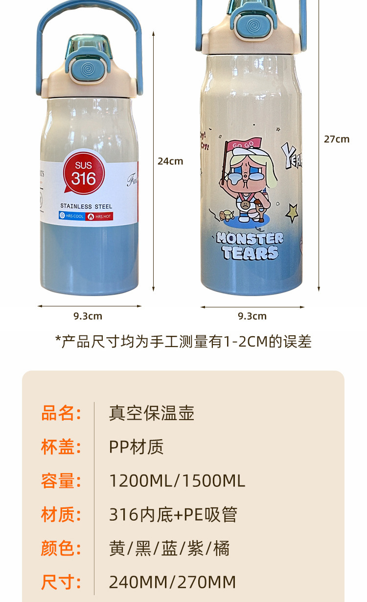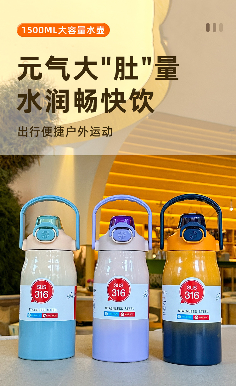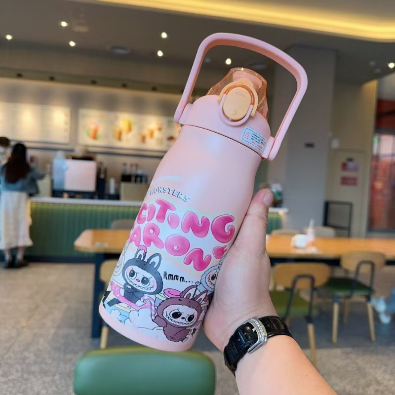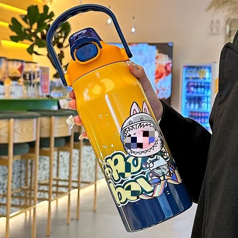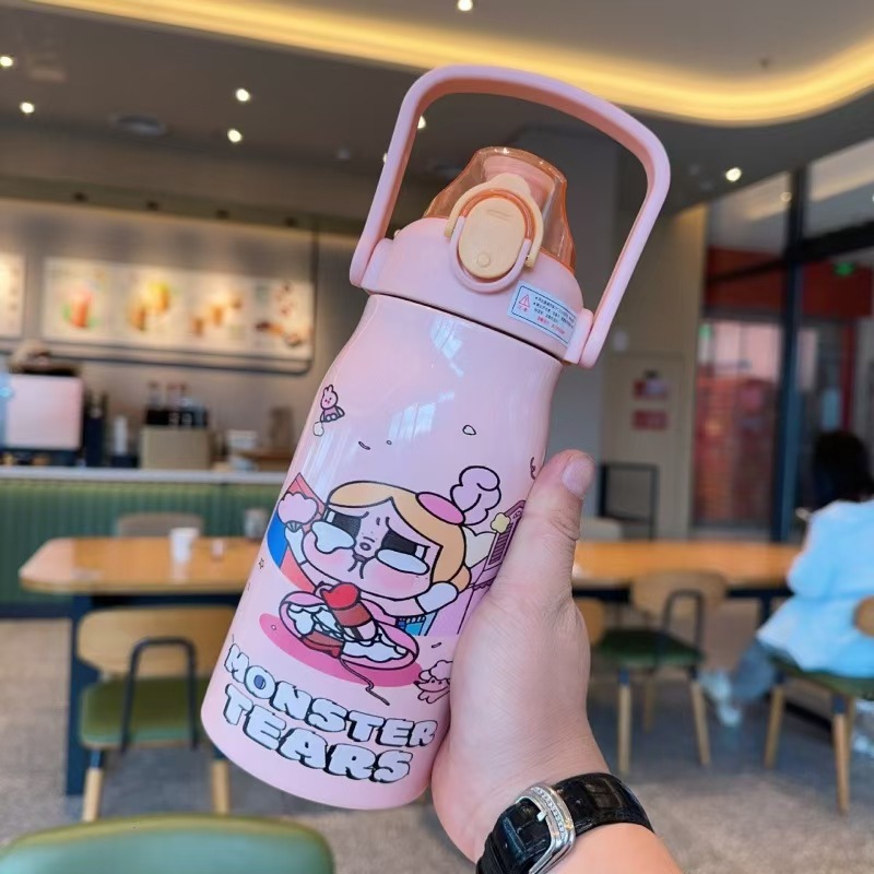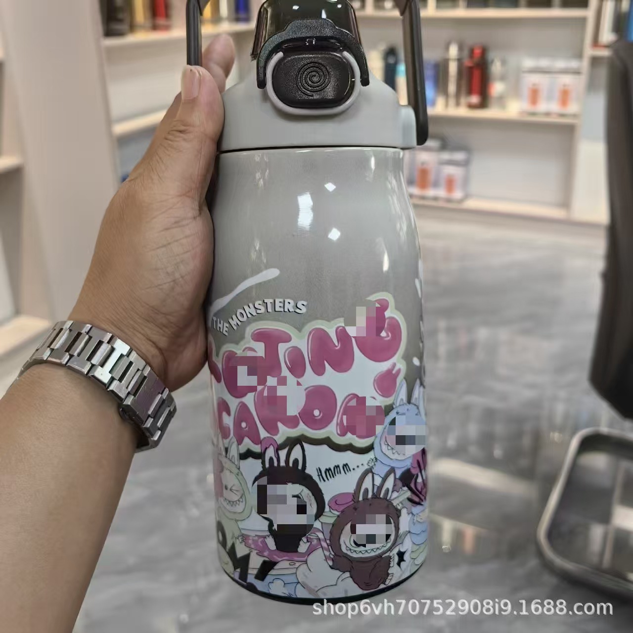 국경 새로운 그라디언트 3D 만화 절연 귀여운 밀짚 컵 학생 대용량 스포츠 휴대용 냄비