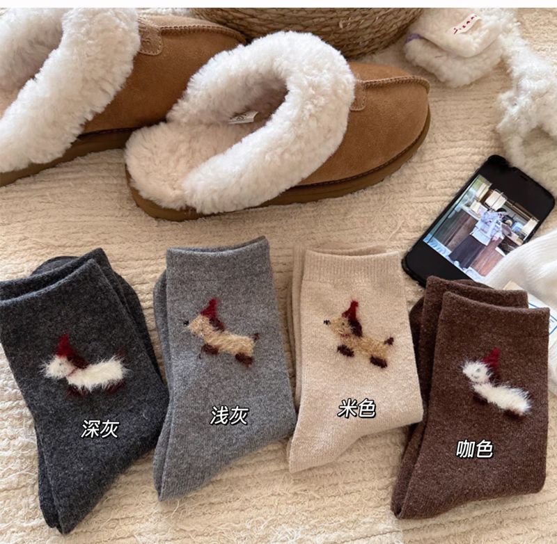 가을과 겨울에 어린이를위한 양모 양말 새로운 패션 만화 봉제 강아지 따뜻한 패딩 기모 더미 양말스토어 가기