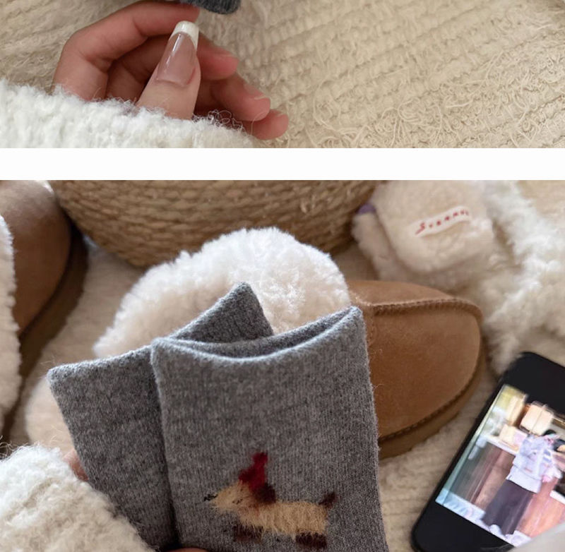 가을과 겨울에 어린이를위한 양모 양말 새로운 패션 만화 봉제 강아지 따뜻한 패딩 기모 더미 양말
