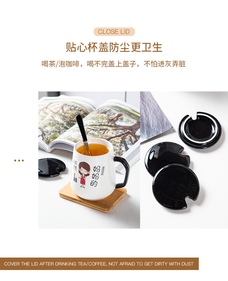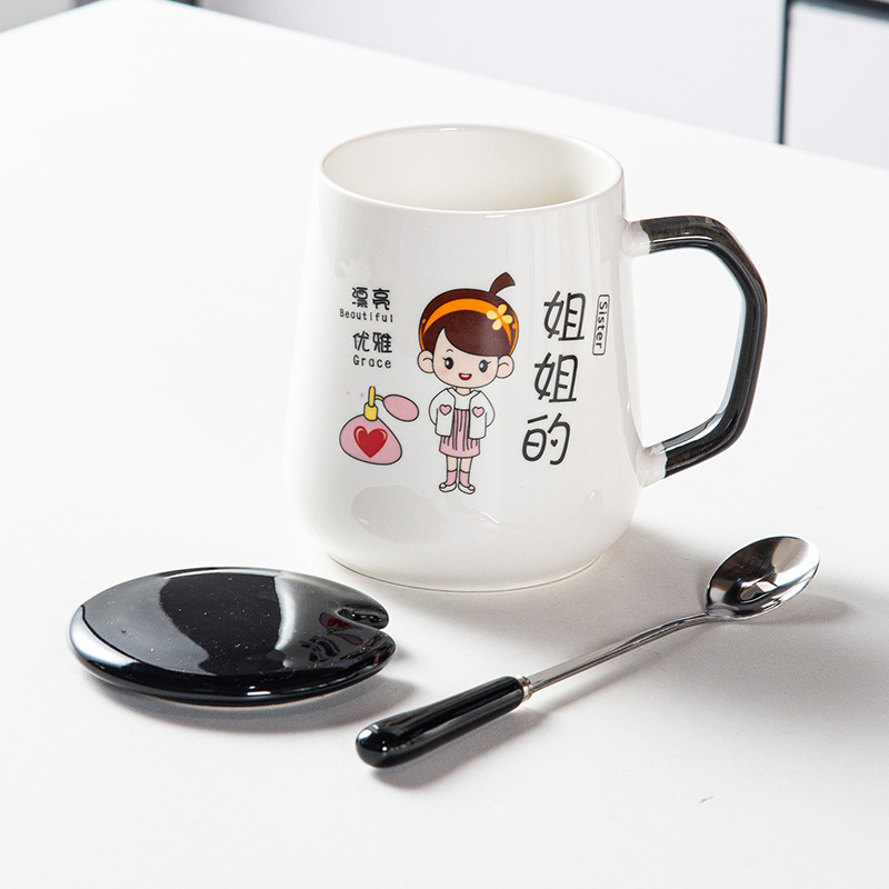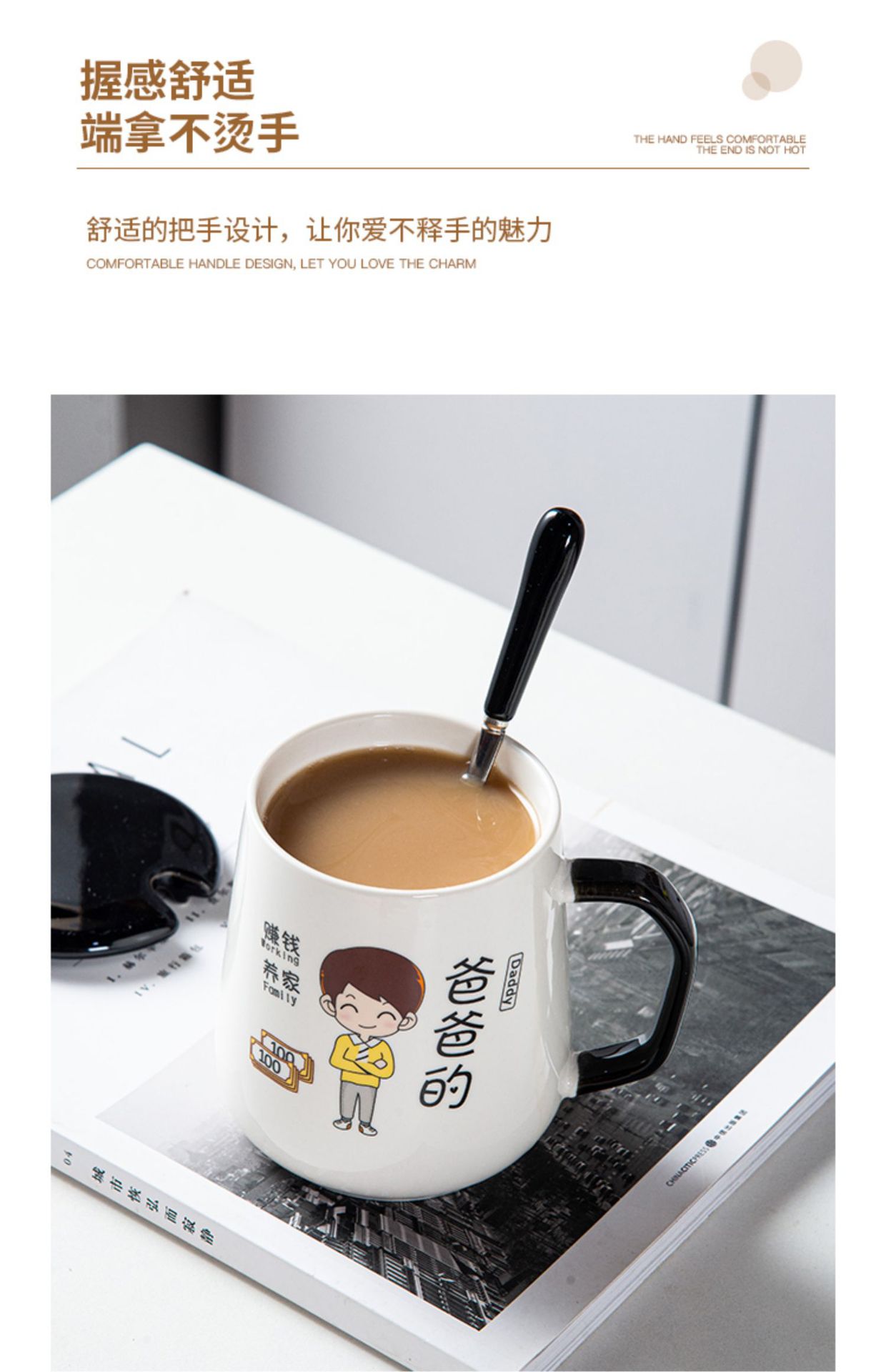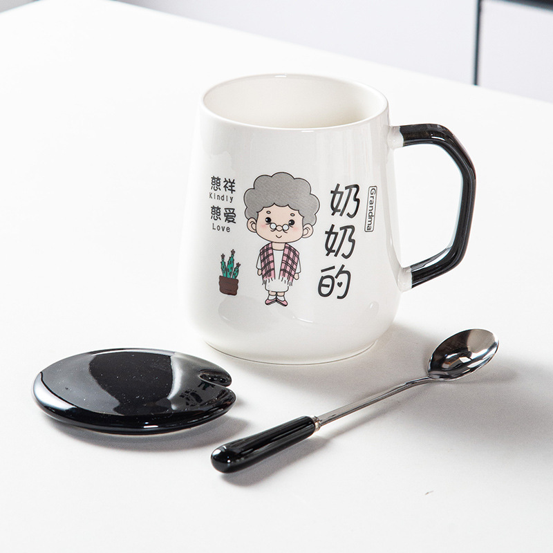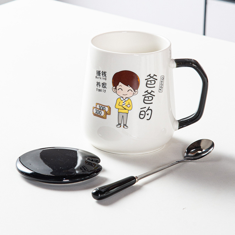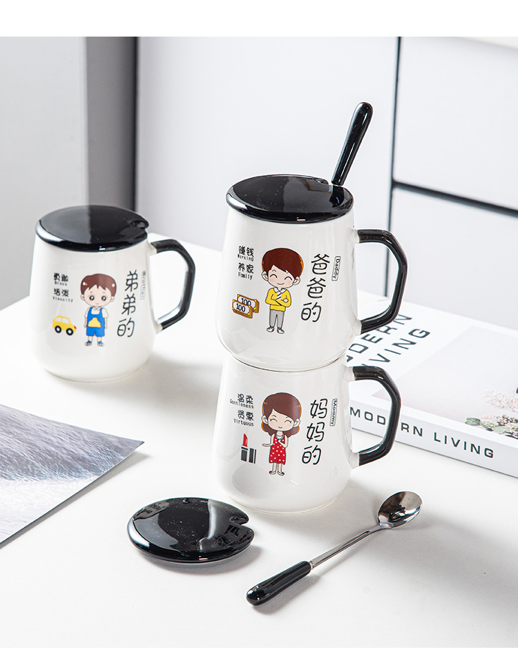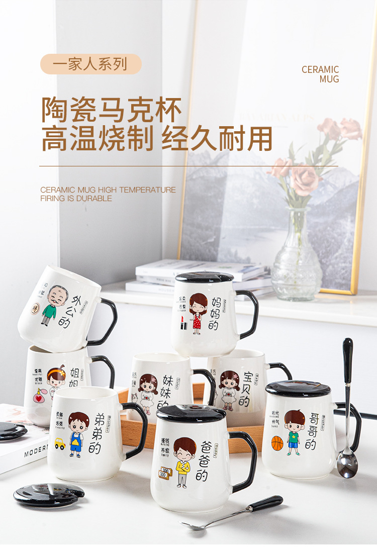 패밀리 패밀리 컵 3 입 4 입 가정용 드루킹 컵 대용량 사이익 세라믹 조식 머그잔 뚜껑과 숟가락