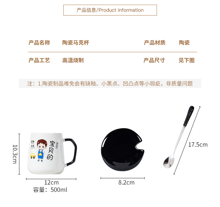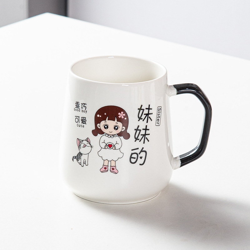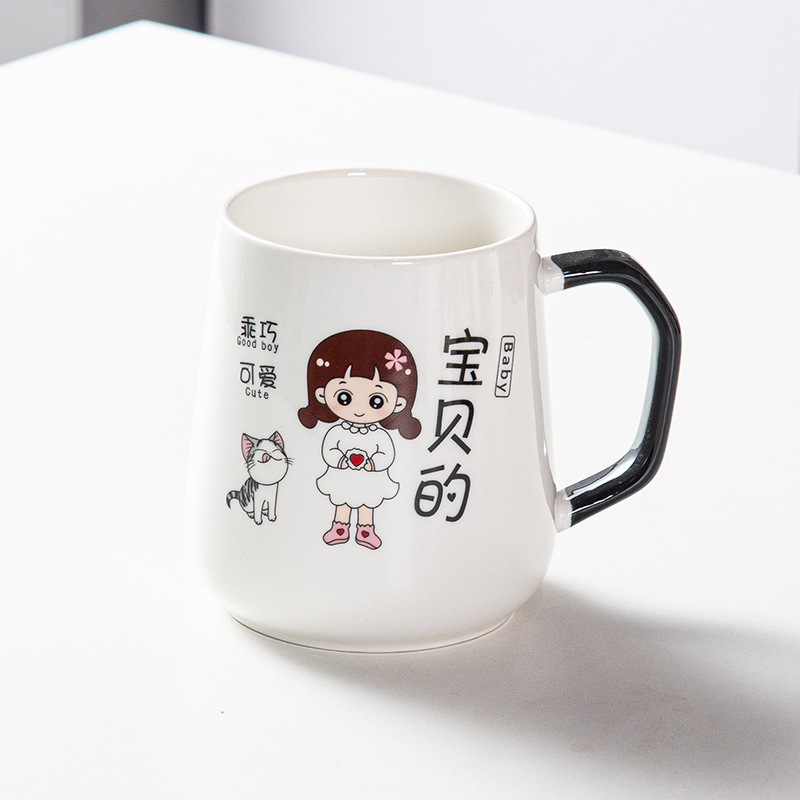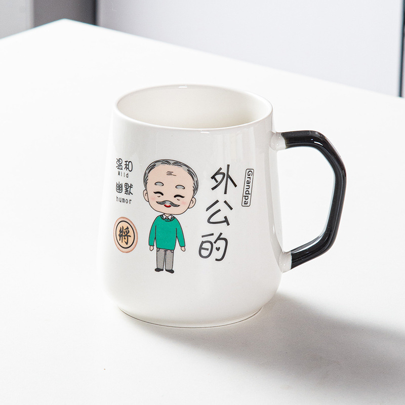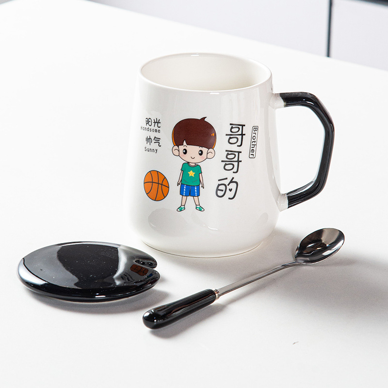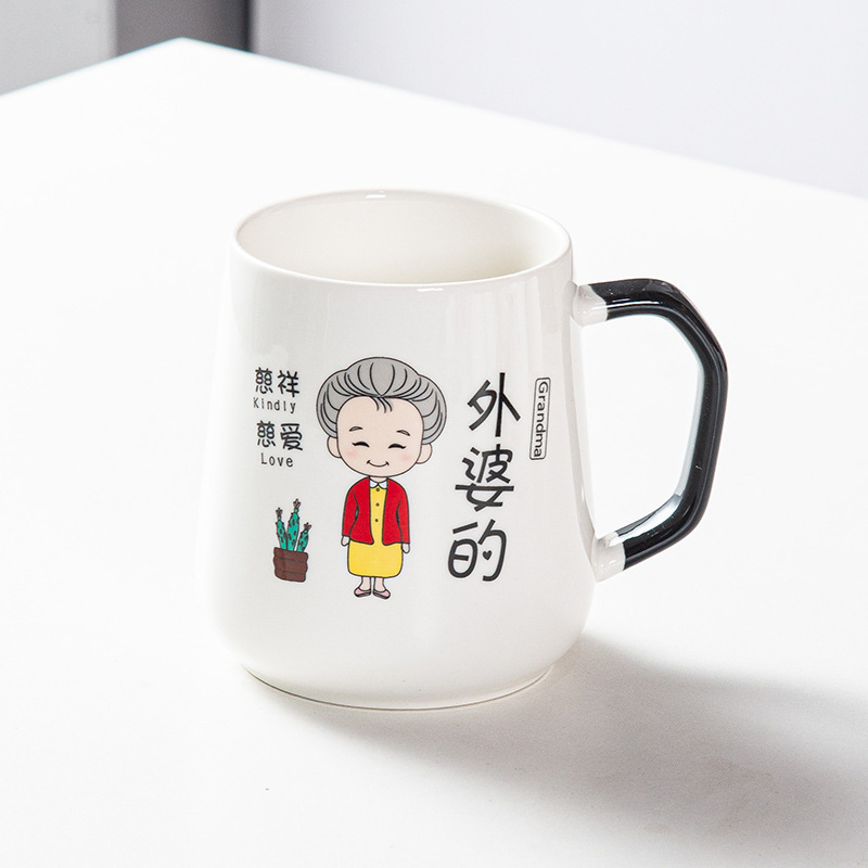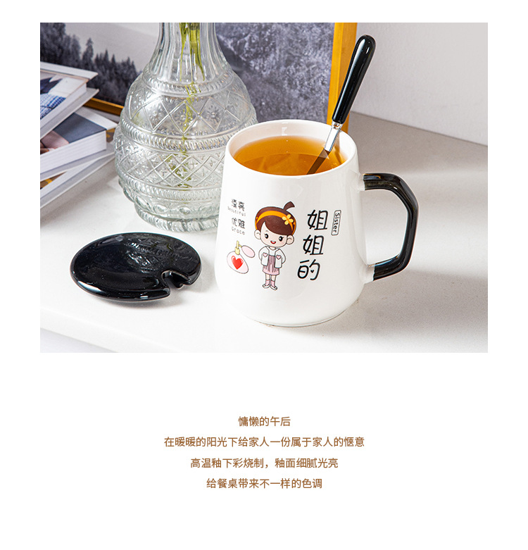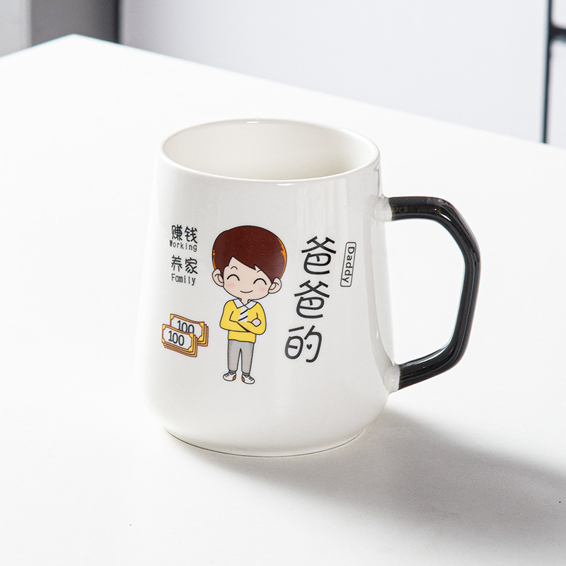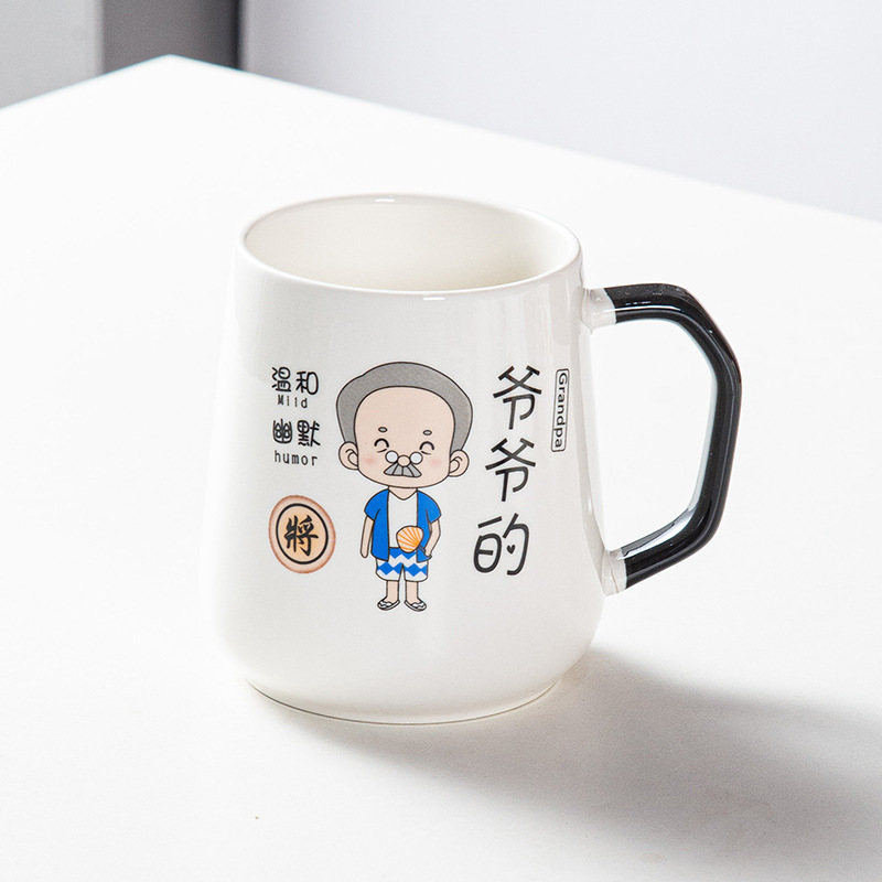 패밀리 패밀리 컵 3 입 4 입 가정용 드루킹 컵 대용량 사이익 세라믹 조식 머그잔 뚜껑과 숟가락