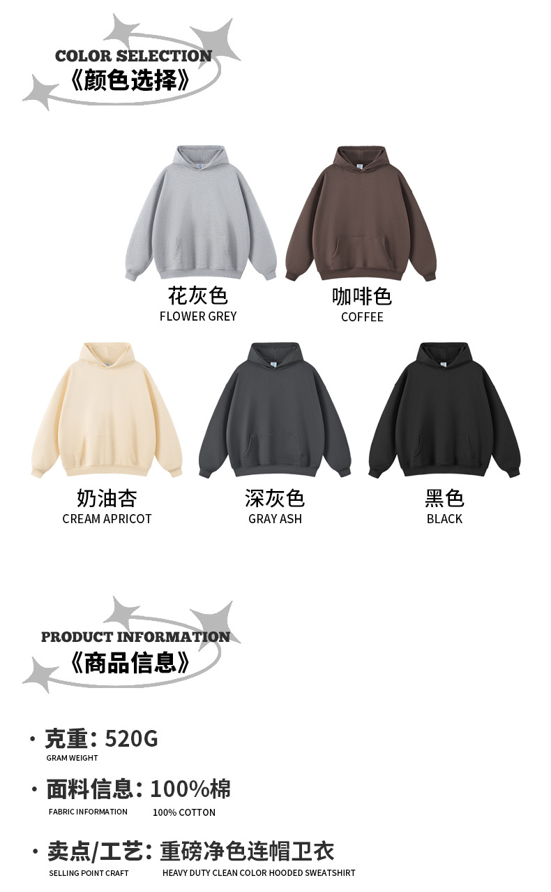 RS 남성복 | 크로스-보더 헤비 520G 테리 후드 남성 바지아 클린핏 패션 브랜드 퓨어 코튼 후디 남성