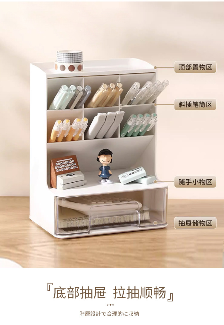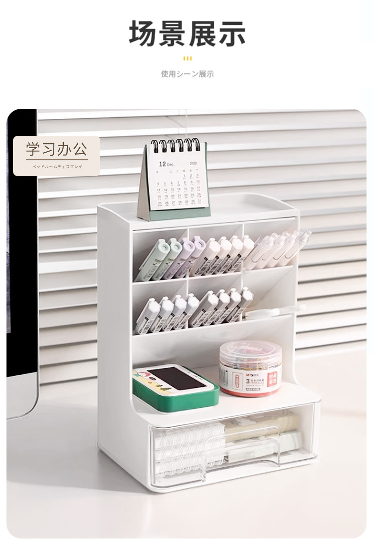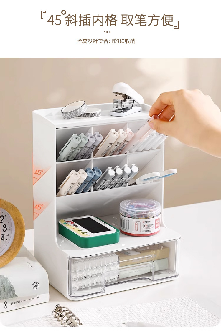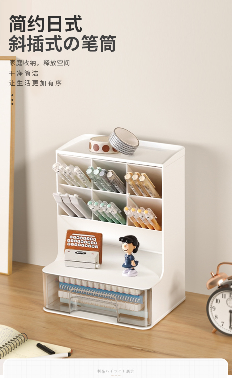 비스듬한 펜 홀더 저장 상자 다기능 데스크탑 랙 어린이 학생 책상 상자 서랍 펜 홀더 문구스토어 가기