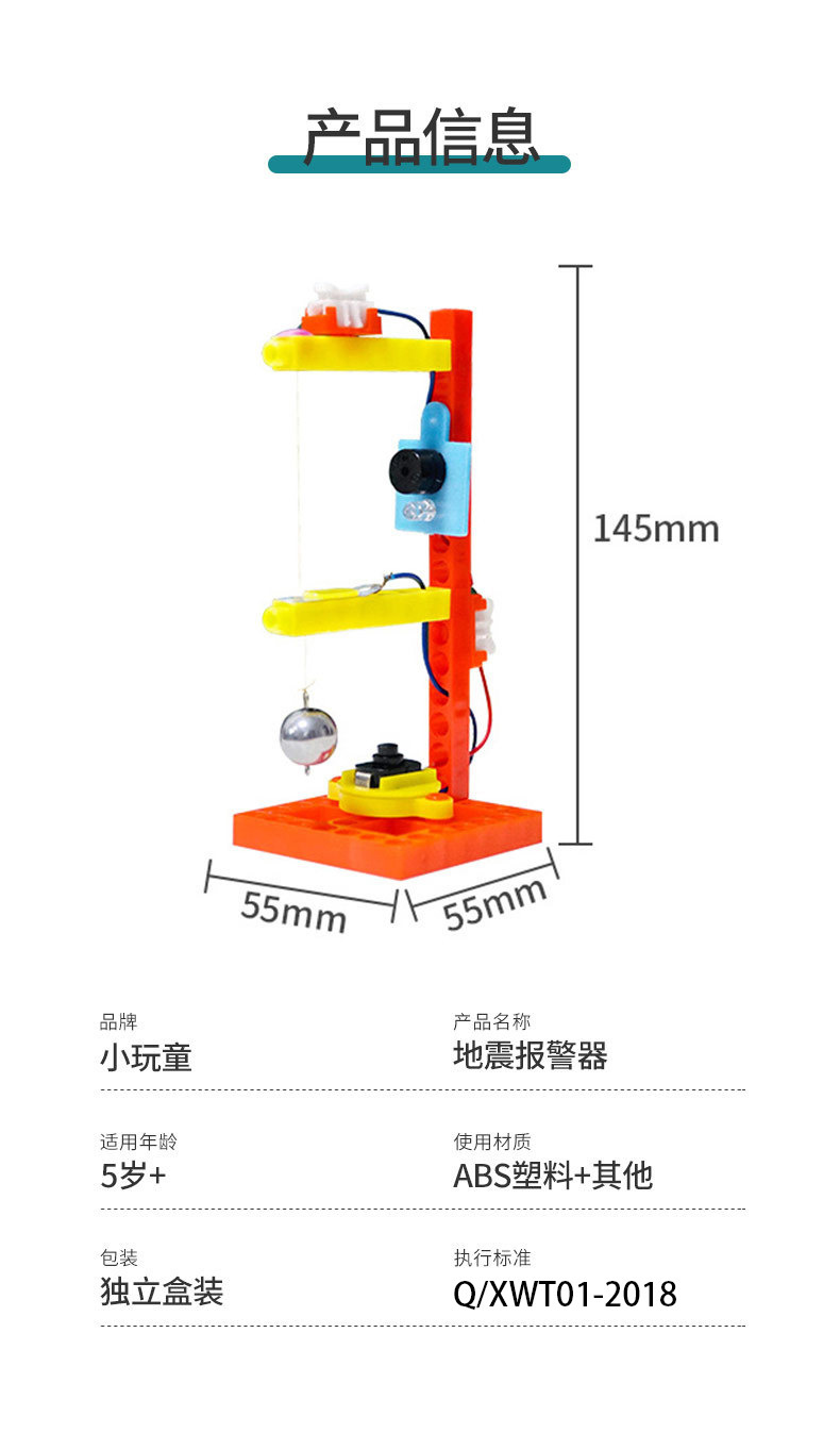 작은 어린이 지진 경보 제조 업체 과학 및 기술 작은 생산 과학 작은 실험 훈련 장비 놀이 교육 보조 재료