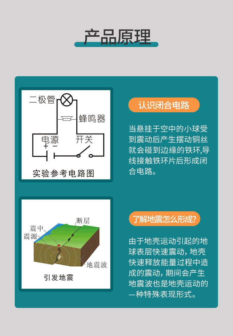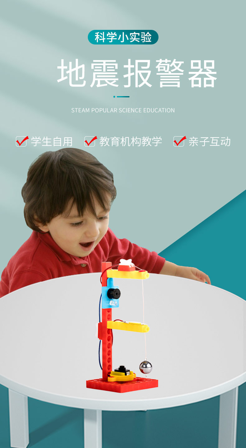 작은 어린이 지진 경보 제조 업체 과학 및 기술 작은 생산 과학 작은 실험 훈련 장비 놀이 교육 보조 재료스토어 가기